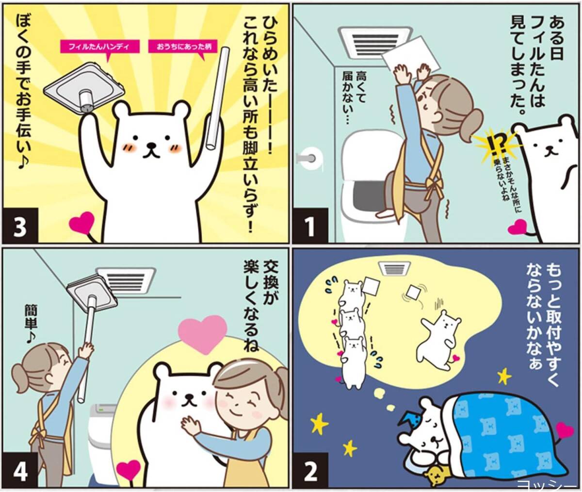 お掃除の大変なお風呂やトイレ天井の換気扇汚れを防止するフィルターです。