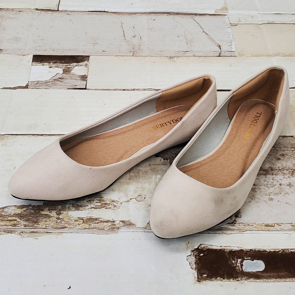【LiBERTYDOLL リバティードール】のぺたんこパンプス。 メーカー累計販売足数20万足突破!! 1cmのローヒールで疲れにくく、歩きやすい。 ポインテッドトゥと甲浅カッティングで、足元をすっきりと見せる大人パンプスです。 |