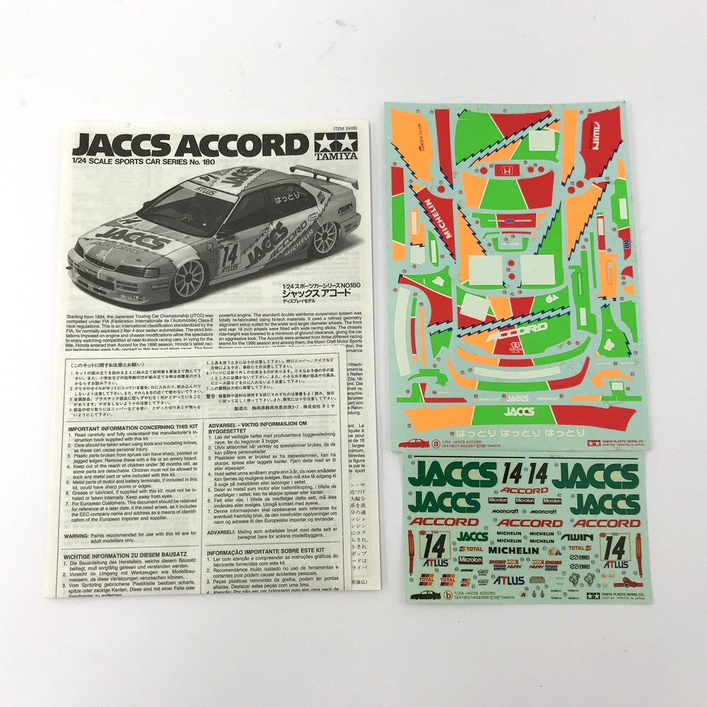 【同梱可】【80】未組立品 TAMIYA タミヤ ジャックス アコード スポーツカーシリーズ No.180 1/24スケール プラモデル ※パーツ完品 | |