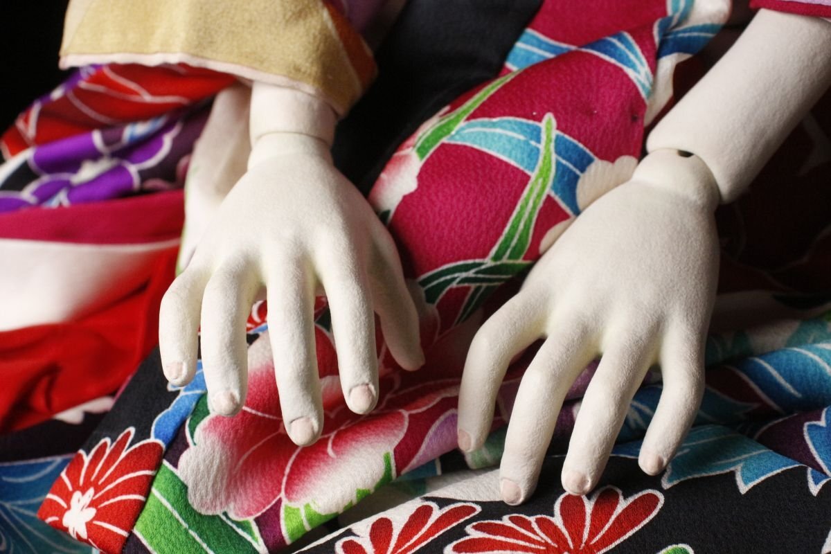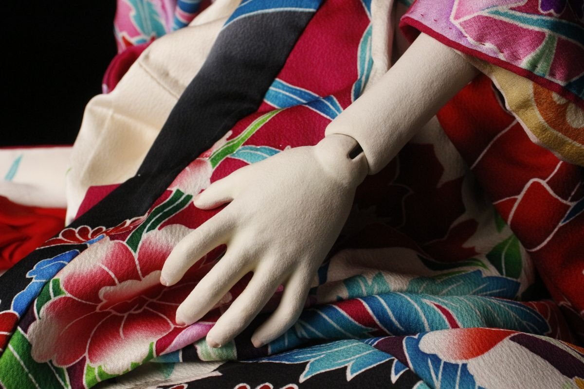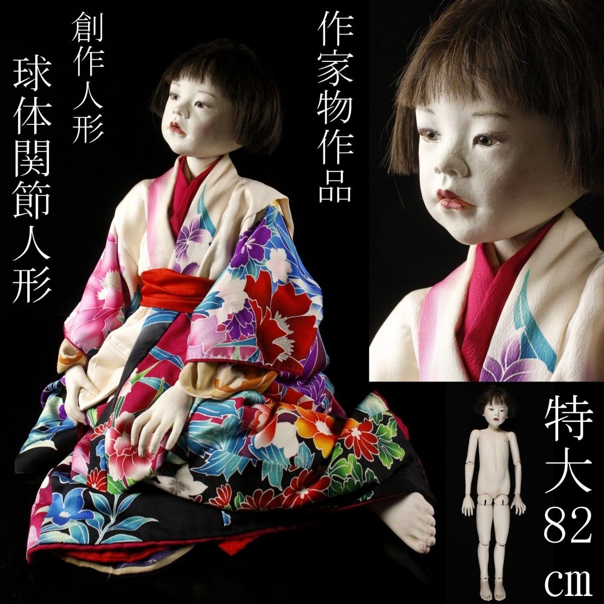 * * * 商品詳細 * * * ここでしか出逢うことのできない唯一の美をご紹介させて頂きます。 艶やかな着物を着た非常にリアリティのある球体関節人形のご紹介です。 仕上がりは丁寧で美しく、最低限の化粧が施されたその顔は幼く、 華奢な体つきは何とも言えない妖艶さがあります。 人体のように光を反射する眼球は生命を思わせ、 ぞくぞくする絶妙な緊張感と鋭い存在感を感じさせます。 芸術的で洗練された無機質な美しさに包まれた神秘性のある逸品です。 この機会に是非お求めください。 ■サイズ/全長82㎝(足を伸ばした状態) ■状態/スレ、小キズ、シミ、欠け、髪に傷み、抜け、 着物にヤケ、ほつれ、糸にちぎれがございます。 ※写真にてご確認、ご了承の上ご入札下さい。