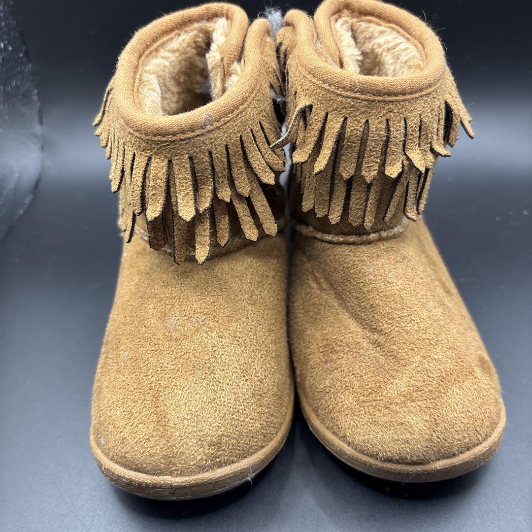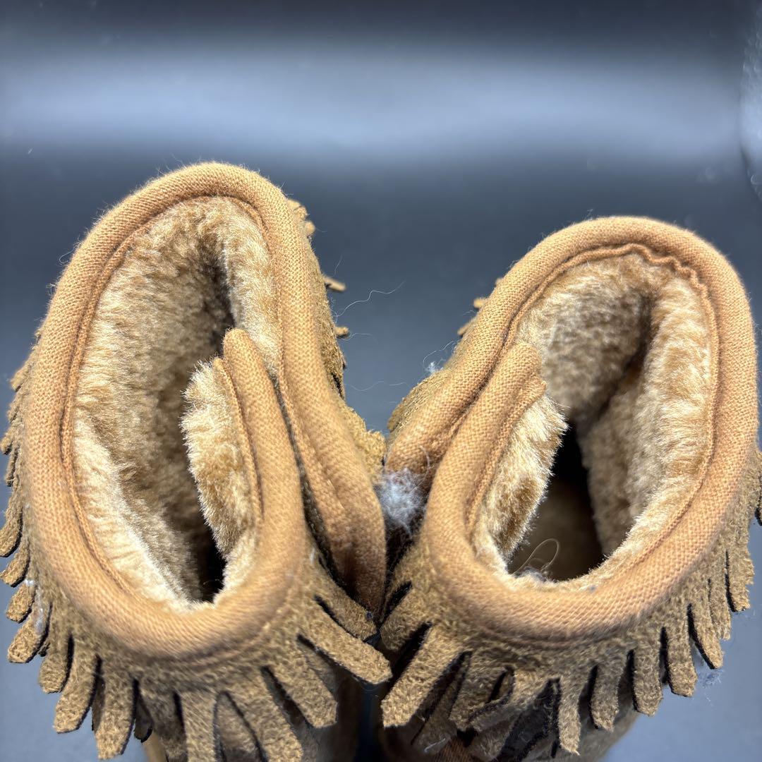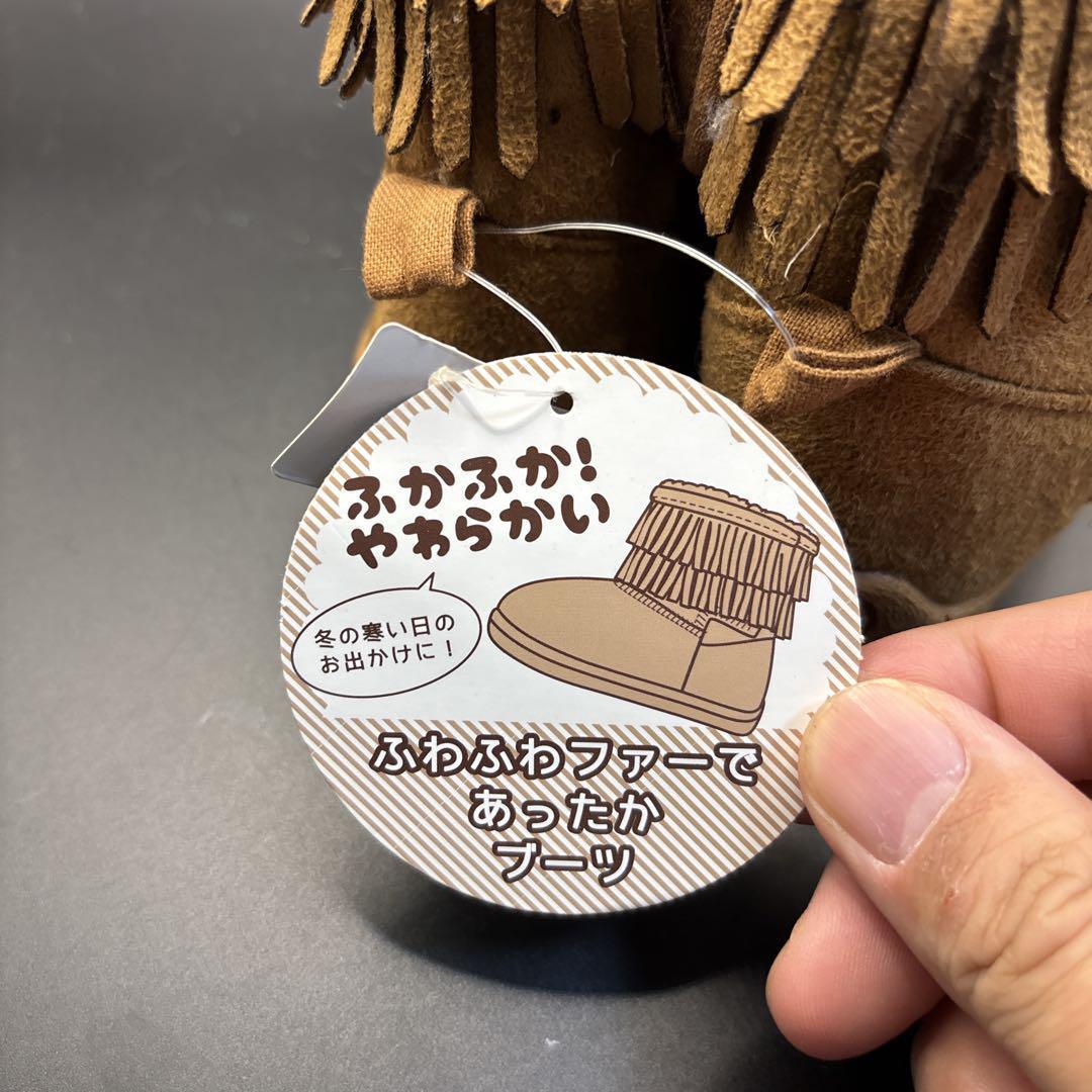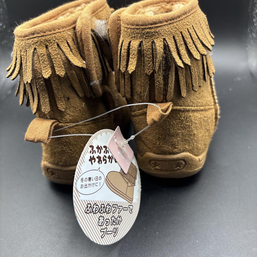フリンジデザインの14cm新しいブーツ、ふわふわのファー素材で快適。