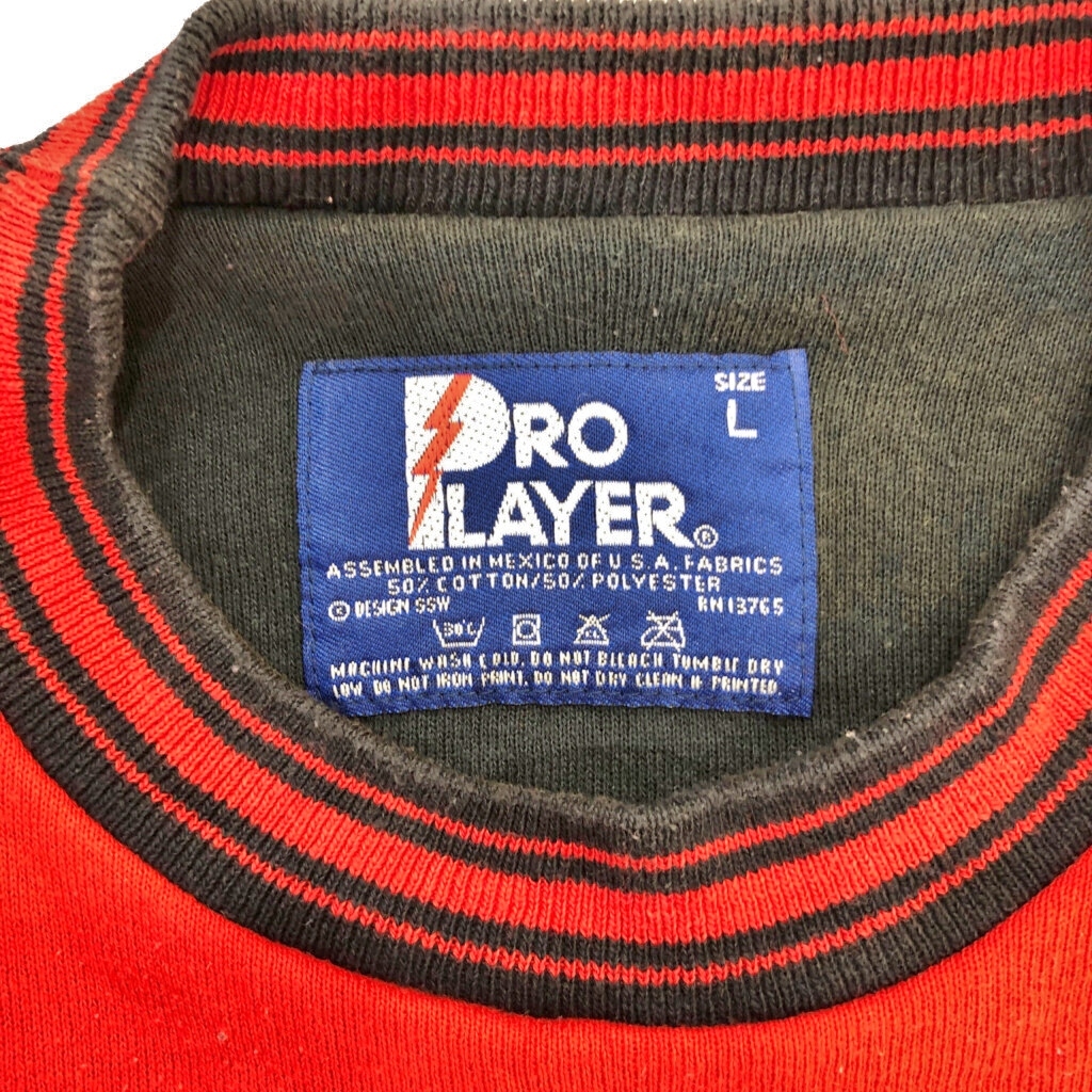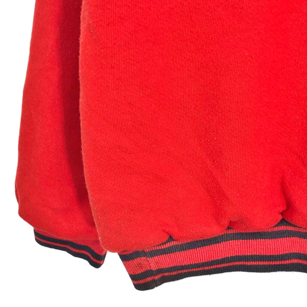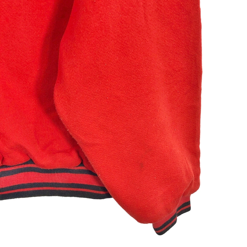 | [商品管理番号] R6821 [ブランド] PRO PLAYER/プロプレイヤー [サイズ] L [実寸サイズ] 肩幅:約55cm 着丈:約63cm 身幅:約57cm 袖丈:約56cm [主な素材] 表地 : コットン [色] レッド [仕様] 90年代 プロチーム 56651 55203 [状態] 汚れ:袖、袖先、裾 特記事項:毛玉、首元ヨレ | |||