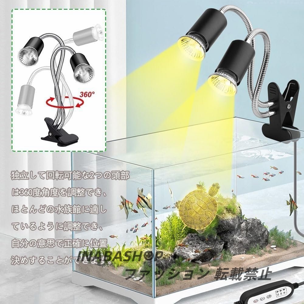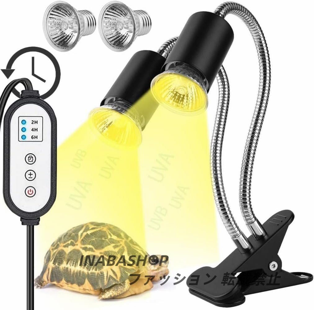 爬虫類ライト バスキングライト 双頭紫外線ライト 爬虫類 治具付き UVA+UVB 亀 ライト 360°回転可能 ホース LED バスキングライト 爬虫類