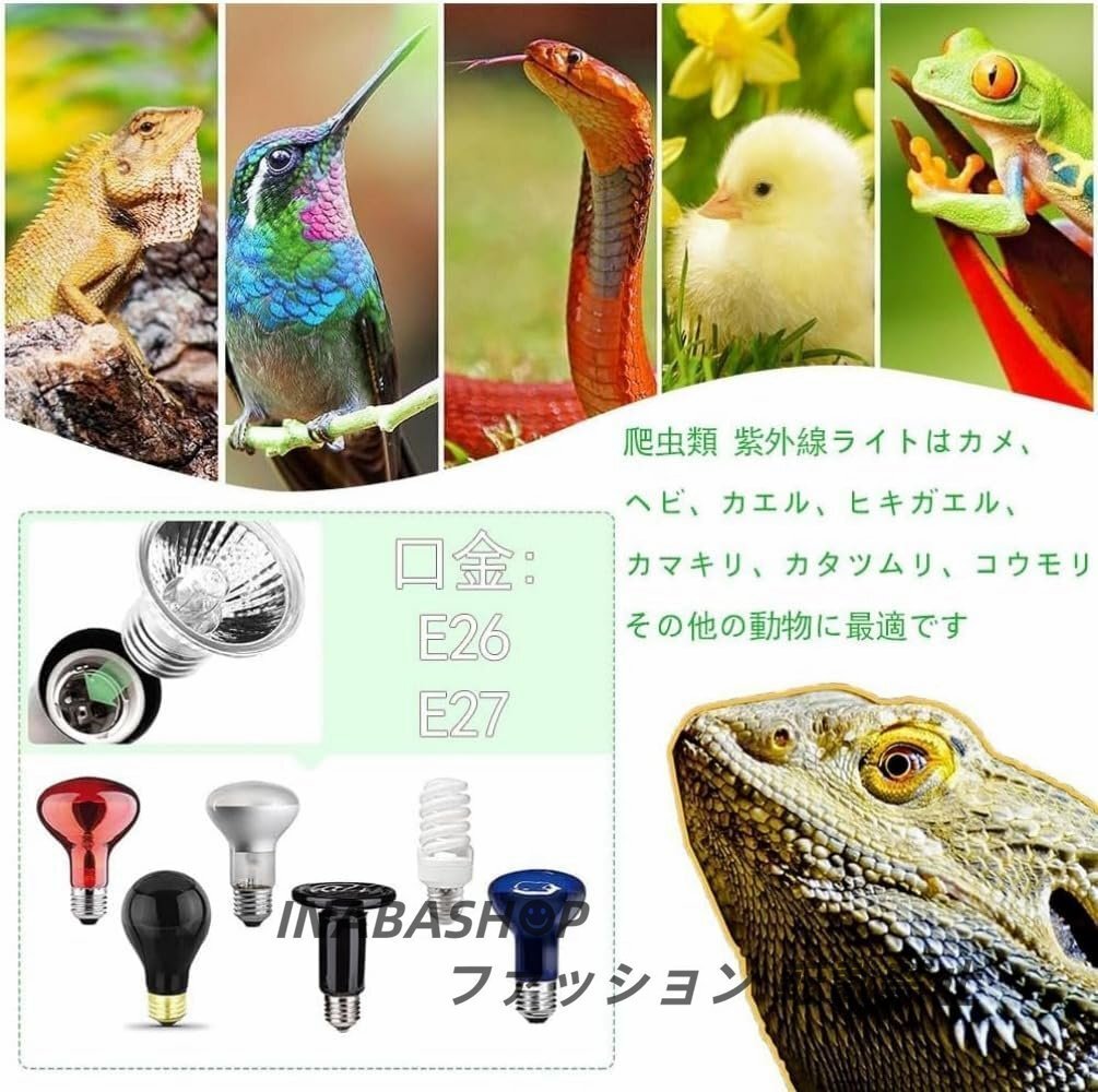 【適用範囲が広い】:爬虫類ライト各種サイズのペットボックスに入れることができ、ほとんどの両生類と哺乳類、爬虫類と多肉植物に適用できる。例:トカゲ、クモ、カエル、カメ、ヘビ、ヤモリ、ヤドカリ、鳥、鶏、魚、植物。