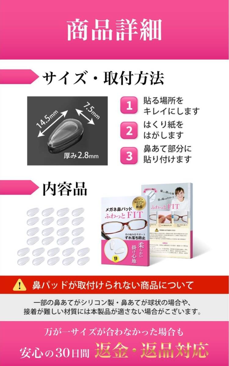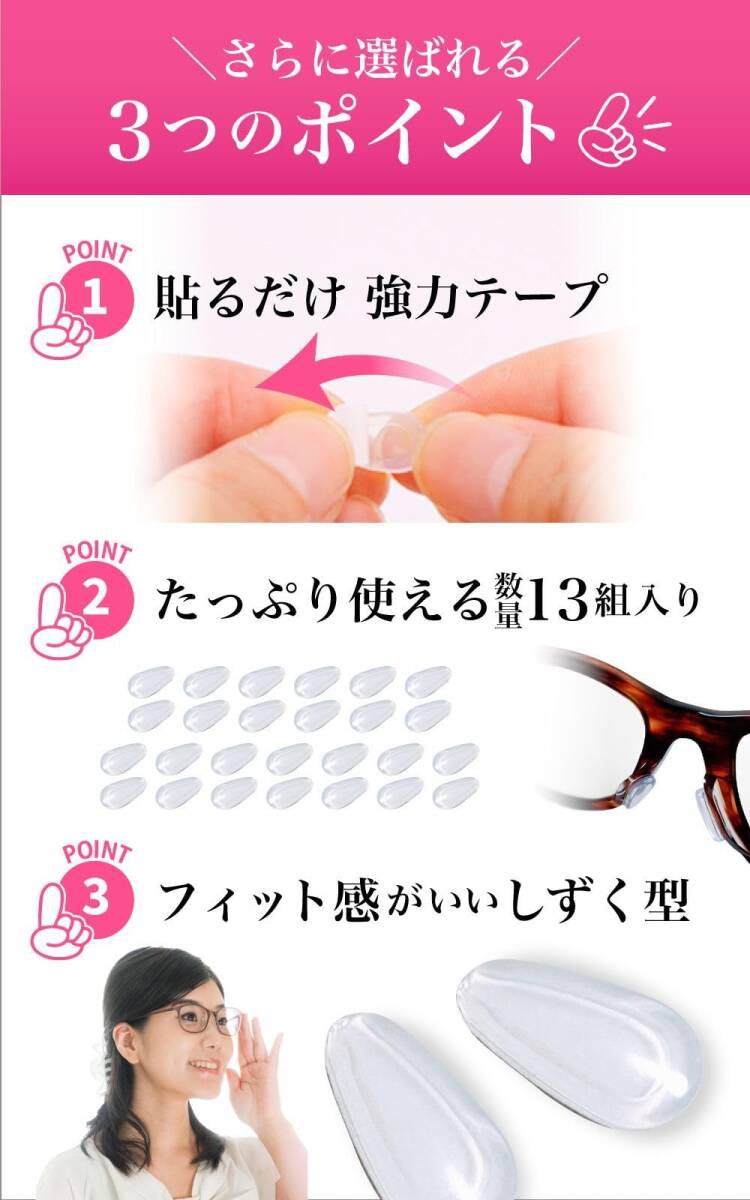 眼鏡 メガネ サングラス 鼻パッド ふわっとFIT 眼鏡鼻パッド メガネ滑り止め japan] ずれ落ち防止 シリコン 鼻の痛み
