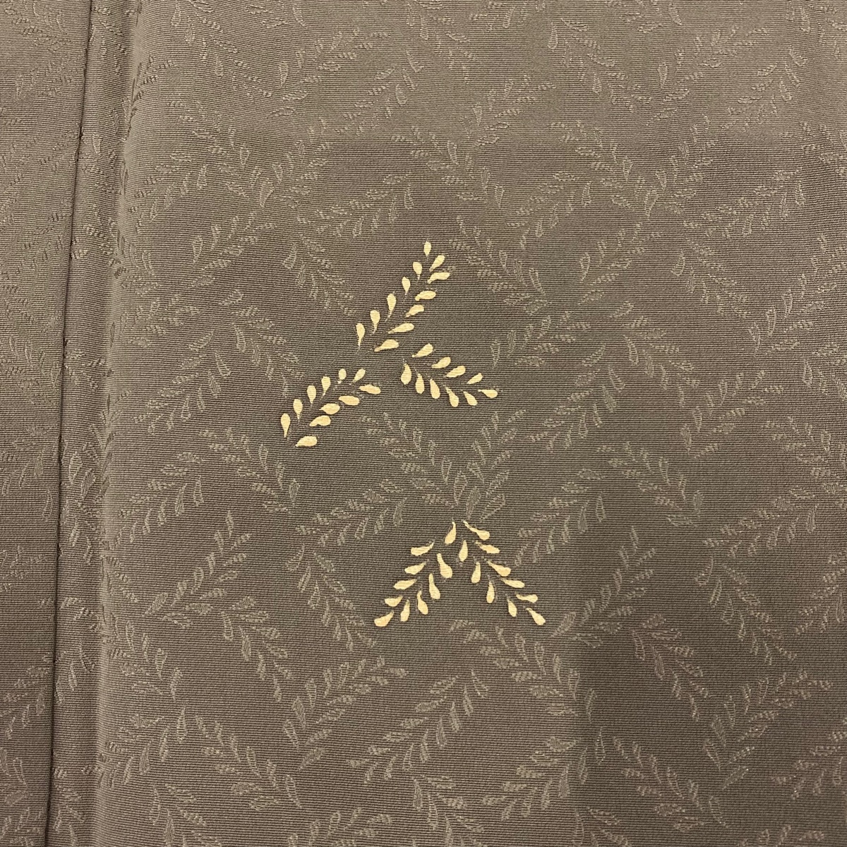 | 小紋 秀品 葉柄 地紋 薄茶色 袷 身丈167 裄丈66 M 正絹 【中古】 |