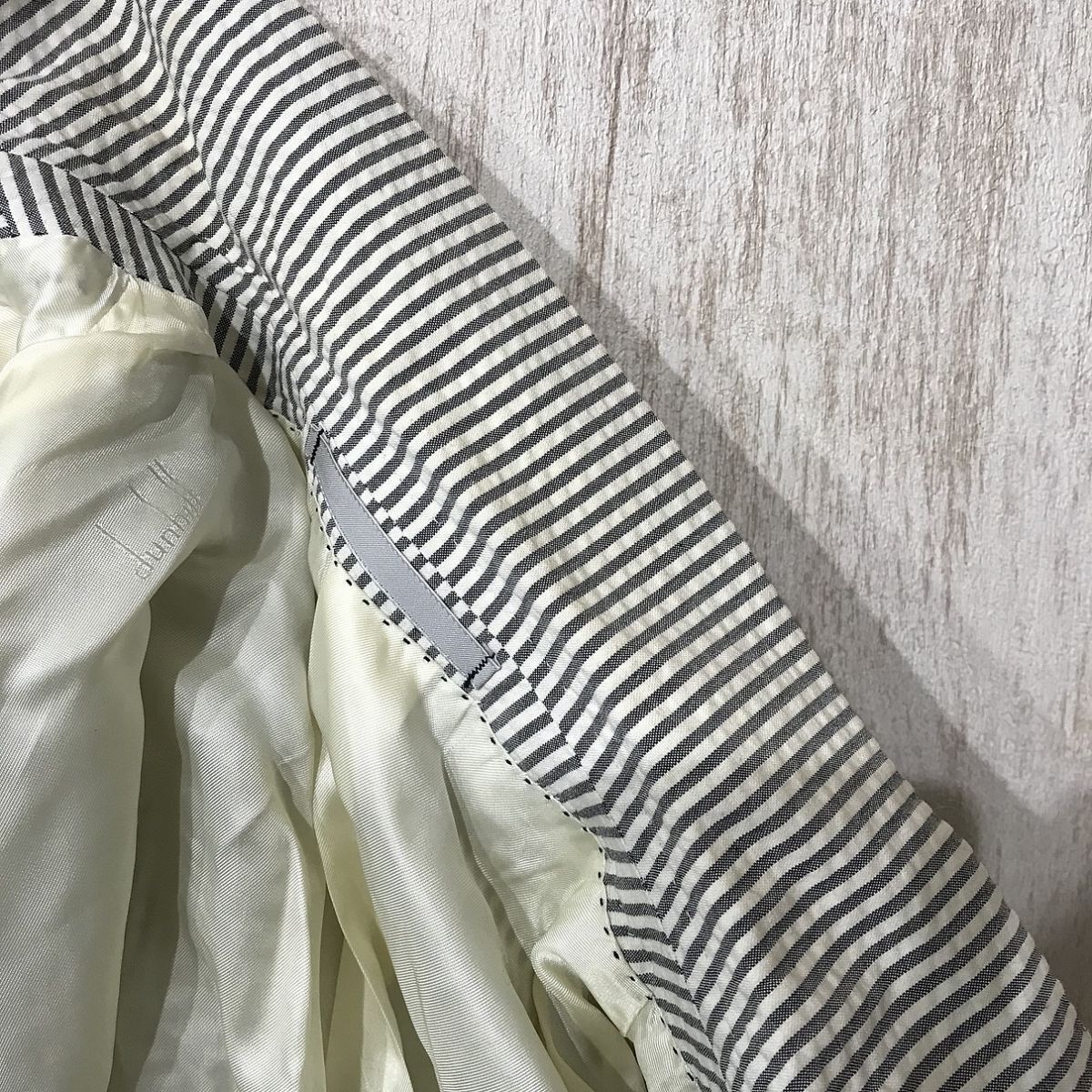 ブランド名:dunhill サイズ:50 J 着丈:78 cm 袖丈:63 cm 肩幅:47 cm 身幅:53 cm 色:グレー×白 状態:襟に薄い汚れ有。 | |||||||||||||||||||||||||||||||
