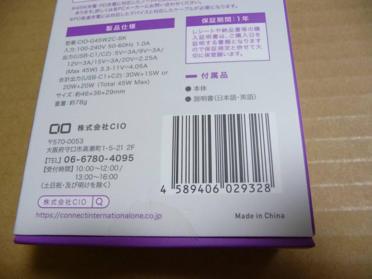 | ◆新品未開封 CIO USB急速充電器 CIO-G45W2C-BK [PD3.0対応/USB-C×2/GaN搭載/折りたたみプラグ採用/ブラック/日本メーカー] 保証付 | |