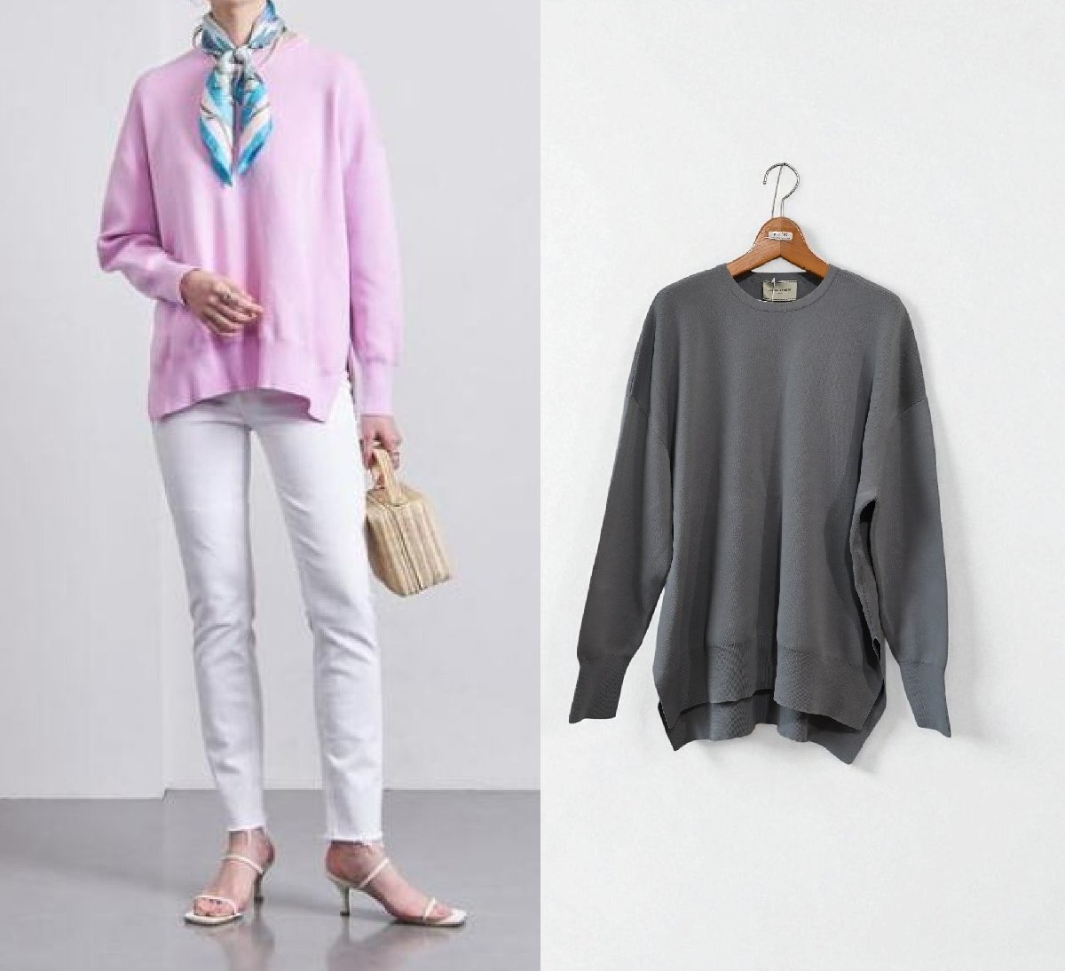ゆったりとしたシルエットで、ワイドやストレートシルエットのパンツと合わせるのがおすすめ。