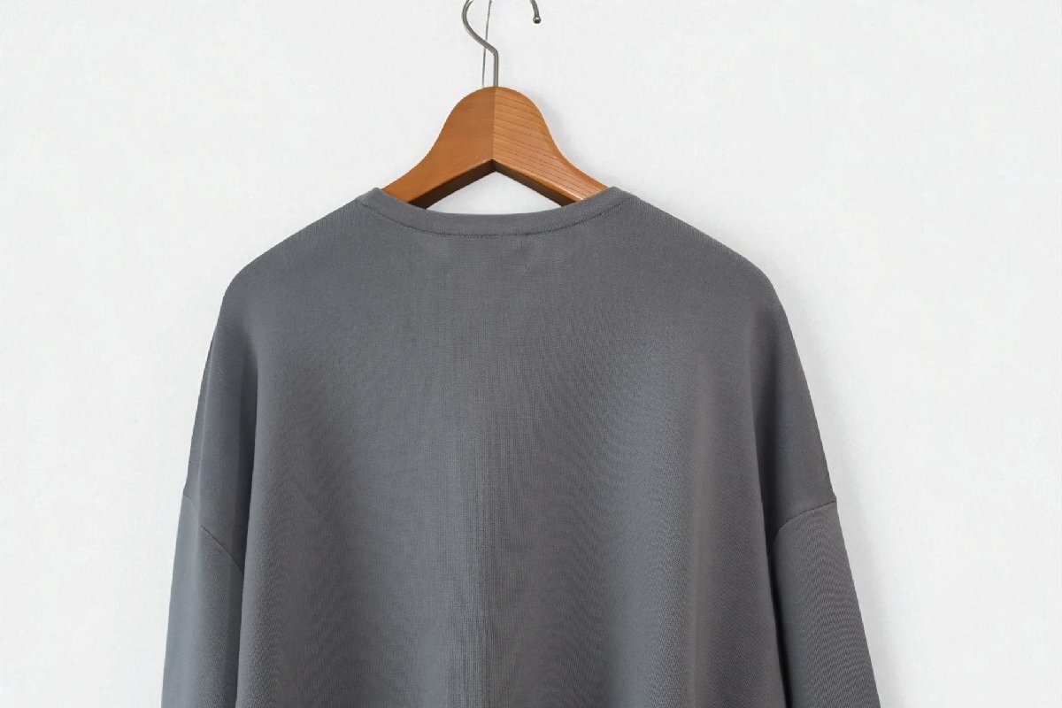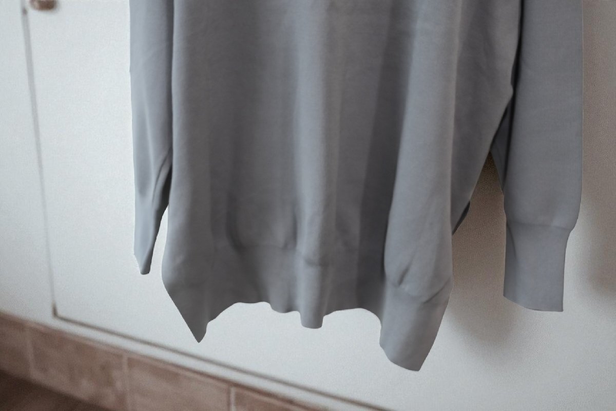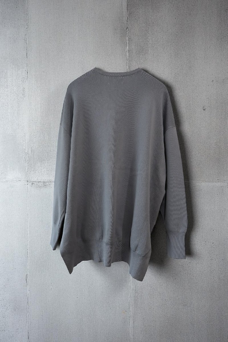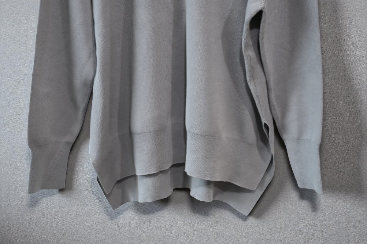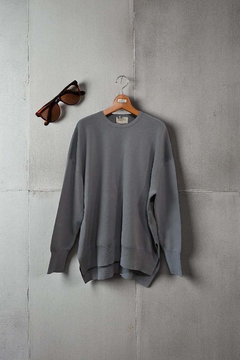 しなやかさが特徴の上質なコットンと極細番手のポリエステルを一緒に編み込んだクルーネックニット。