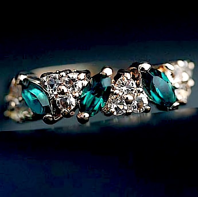 こちらマーキズカットのエメラルド、ダイヤモンド925シルバーリングとなります。