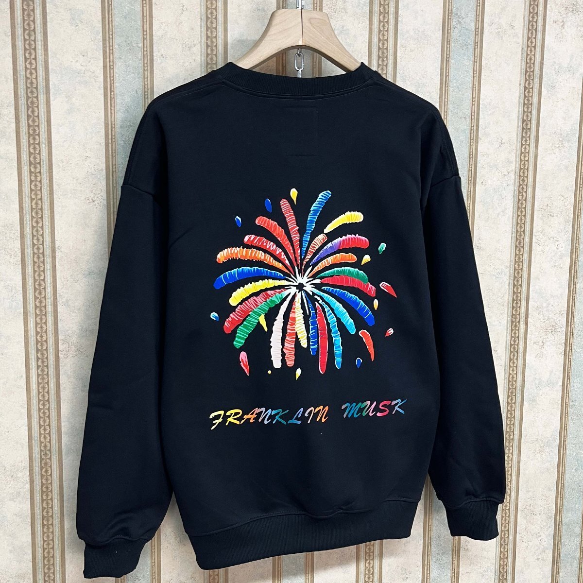 定番 定価4万 FRANKLIN MUSK・アメリカ・ニューヨーク発 トレーナー エジプト綿100% 柔らか 丸首 スウェット 花火 カジュアル サイズ3