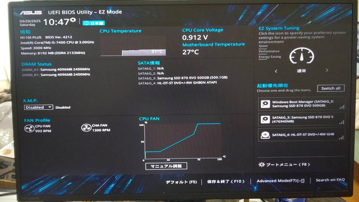 ASUSのMini-itx H110 マザー組み込みの自作機です
