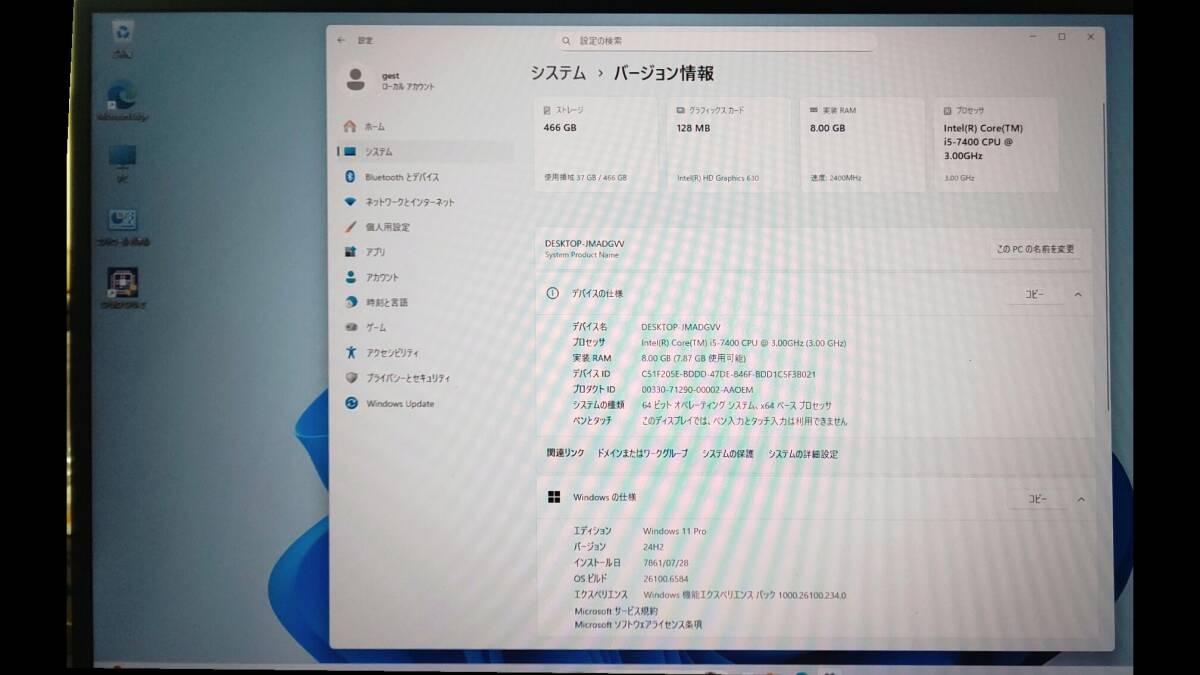 ●CPU 第7世代 Core i5-7400 3.00GHz