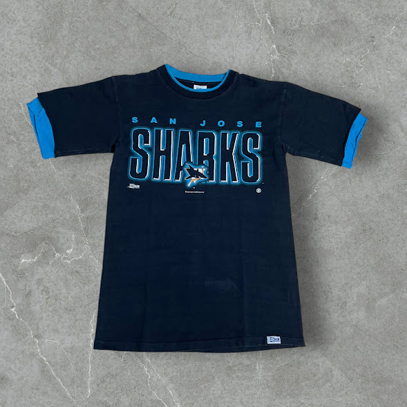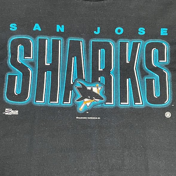 | 90's SALEM NHL レイヤードネックTシャツ Mサイズ USA製 サンノゼ・シャークス アイスホッケーチーム |
