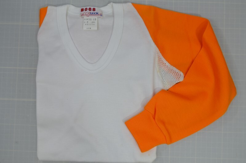 ★ベースボール★U首アンダーシャツ(長袖) SG-12 【カラー】 ホワイトXオレンジ 【素 材】 身頃 綿70%.ポリエステル30% 袖 アクリル100% 【サイズ】 J-7(身長125cm) | |