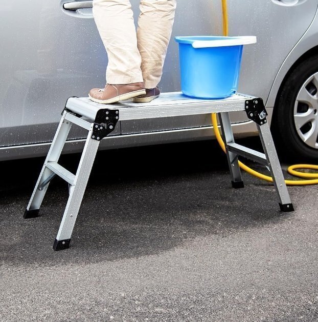 ※新品未使用【商品内容】:折りたたみ式踏み台【重量】:(約)4kg【組立サイズ】:(約)110cm×41cm×50cm【素材】:アルミ製【耐荷重】:(約)150kg