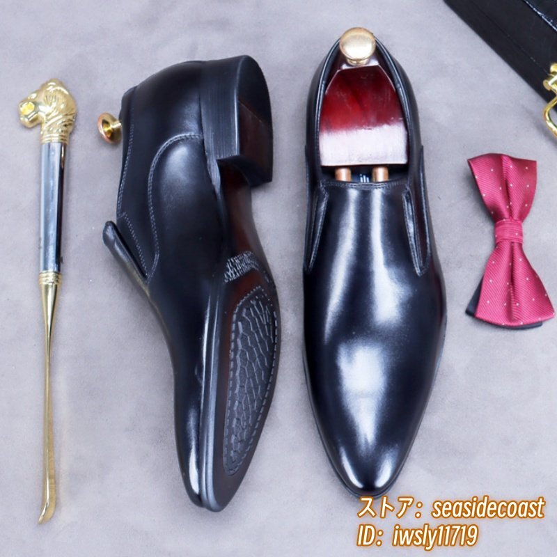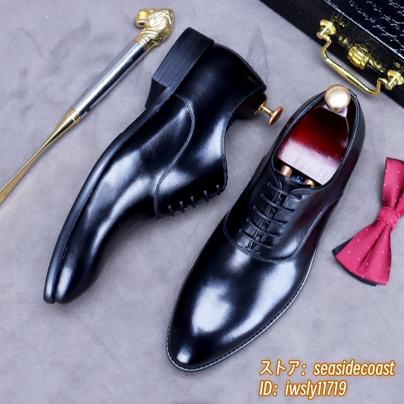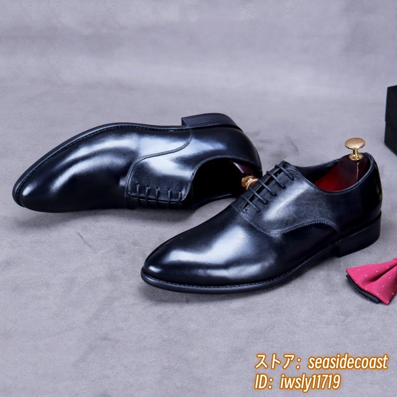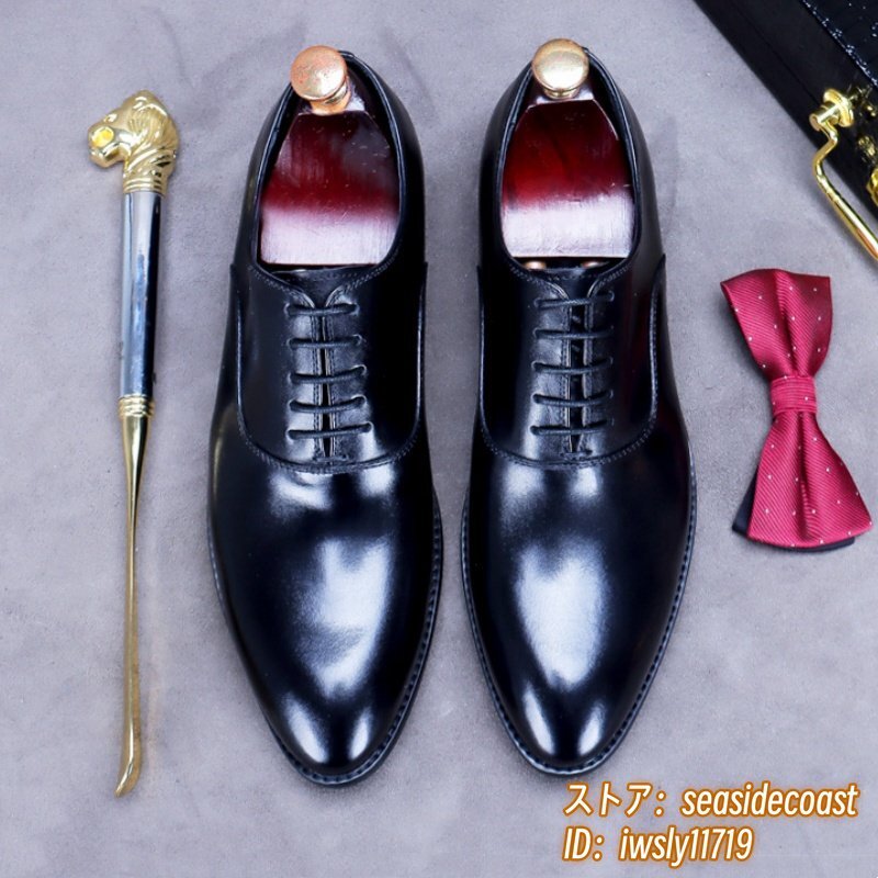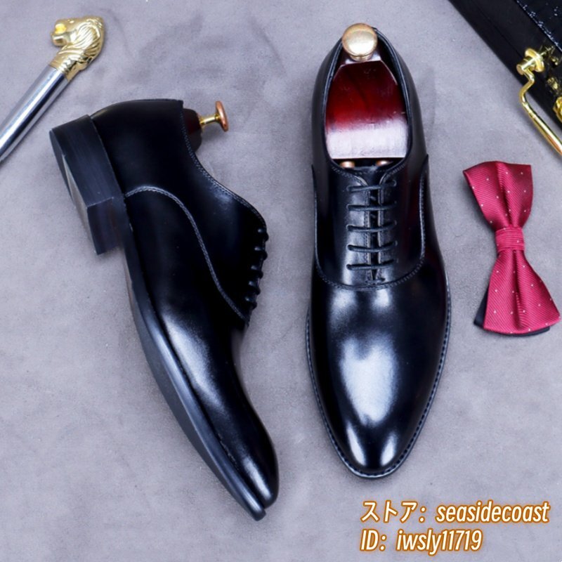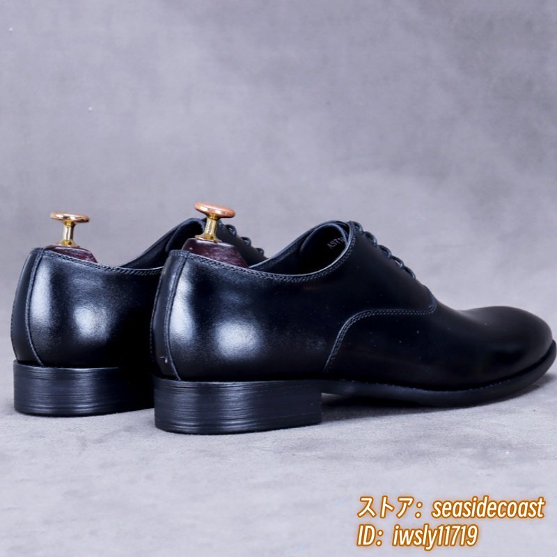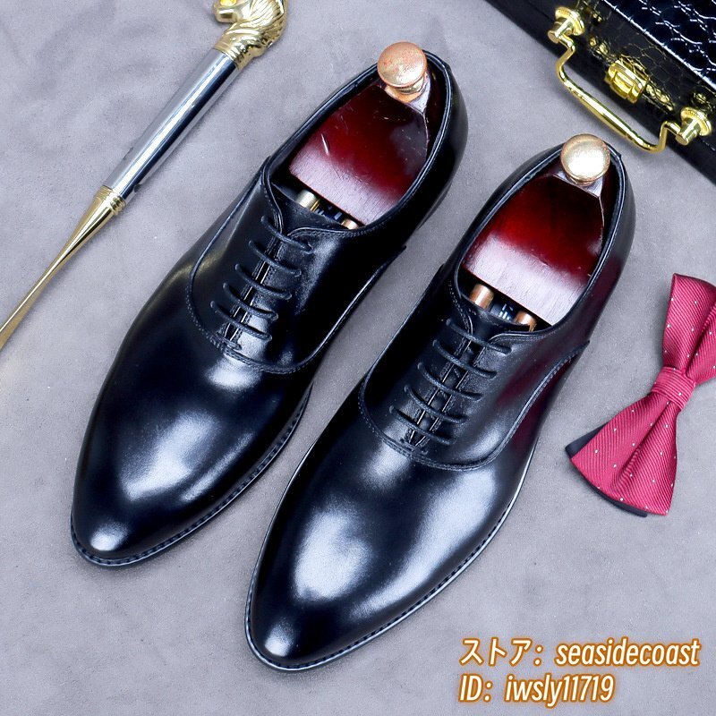超希少★定価10万超 本革 レザーシューズ メンズ 新品 ビジネスシューズ 職人手作り 高級牛革 紳士靴 革靴 フォーマル宴会 ブラック 24.5cm