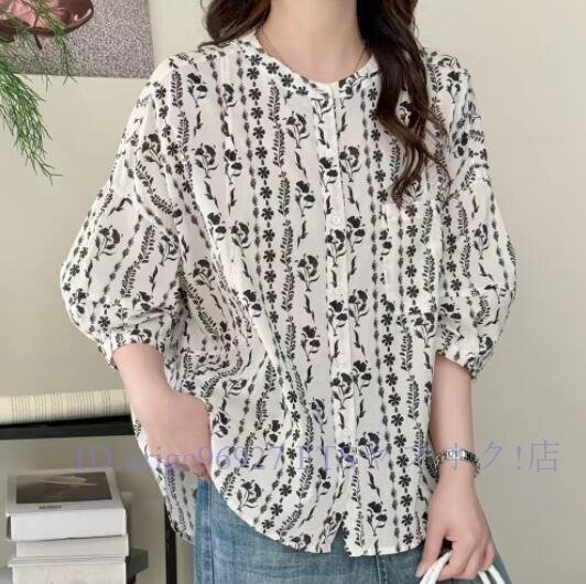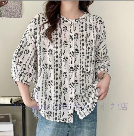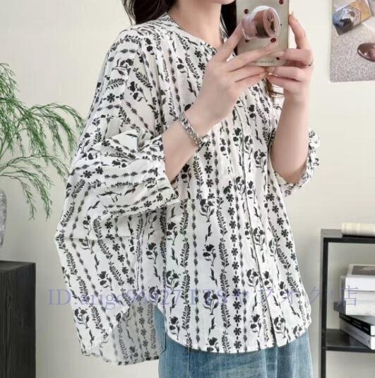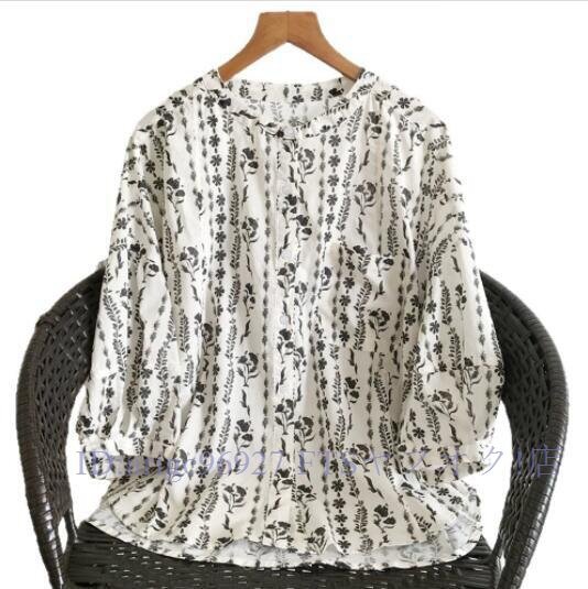 ★新品チュニック トップス ワイシャツ 半袖 ゆったり 綿100% フリーサイズ ナチュラル 通気性肌触り抜群 プリント花柄