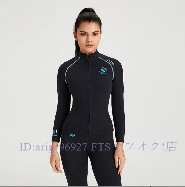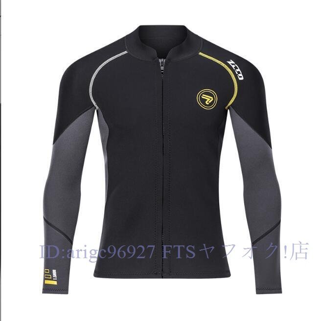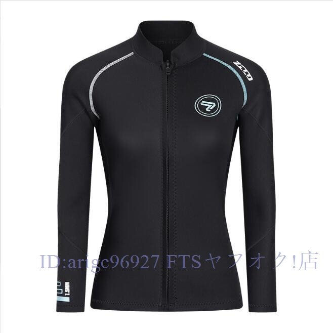 ブラック 長袖タッパー ウェットスーツ メンズ レディース 1.5mm ネオプレン フロントジッパー シュノーケリング ボディーボード 釣り