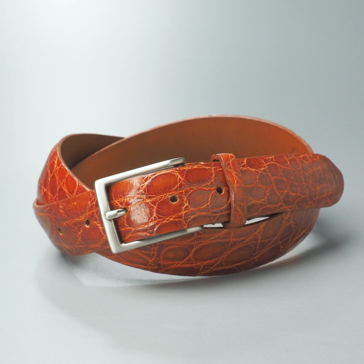 | MI0923//イタリア製*ユナイテッドアローズ*メンズ95/110/本ワニ革/カイマン/レザーベルト/革ベルト/茶/ブラウン | |||