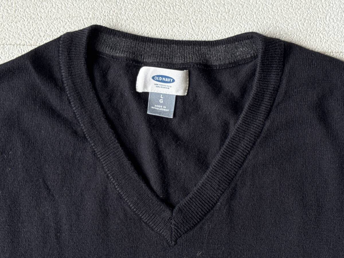 ☆送料無料☆ OLD NAVY オールドネイビー 古着 Vネック コットン ニット セーター メンズ L ブラック トップス 中古 即決