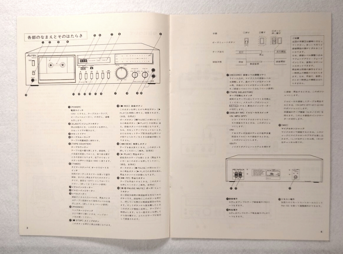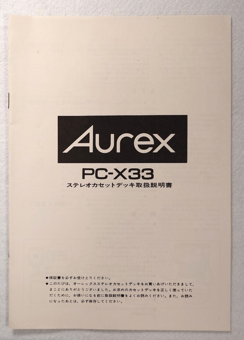 何十年も前に自身で使用していたAurexのカセットデッキPC--X-33の取扱説明書です