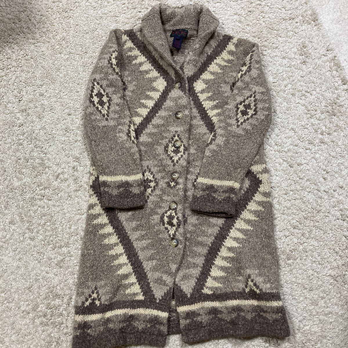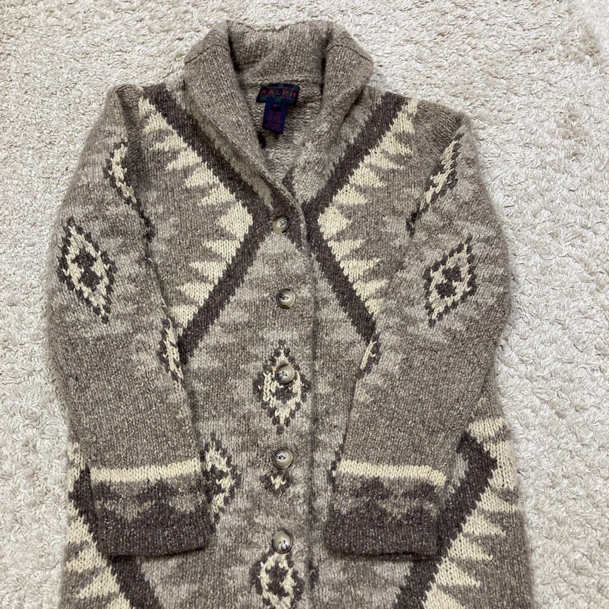 ラルフローレン ネイティブ ハンドニットカーディガンです。ハンドニットなので一本一本職人さんが手編みしています。