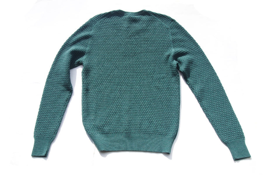 イタリア最大規模のニットメーカーの<グランサッソ>が使用しているハイゲージのメリノウールは、クオリティーが高く、ハイゲージではあるものの総柄になっているため適度なボリューム感があります。