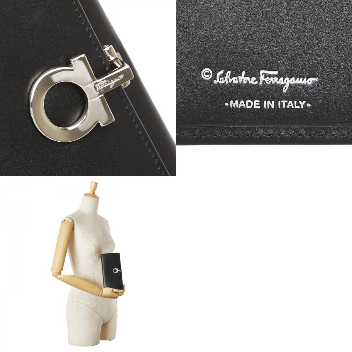 サルヴァトーレフェラガモ ガンチーニ 長財布 AQ-220107 ブラック レザー レディース Salvatore Ferragamo 【中古】