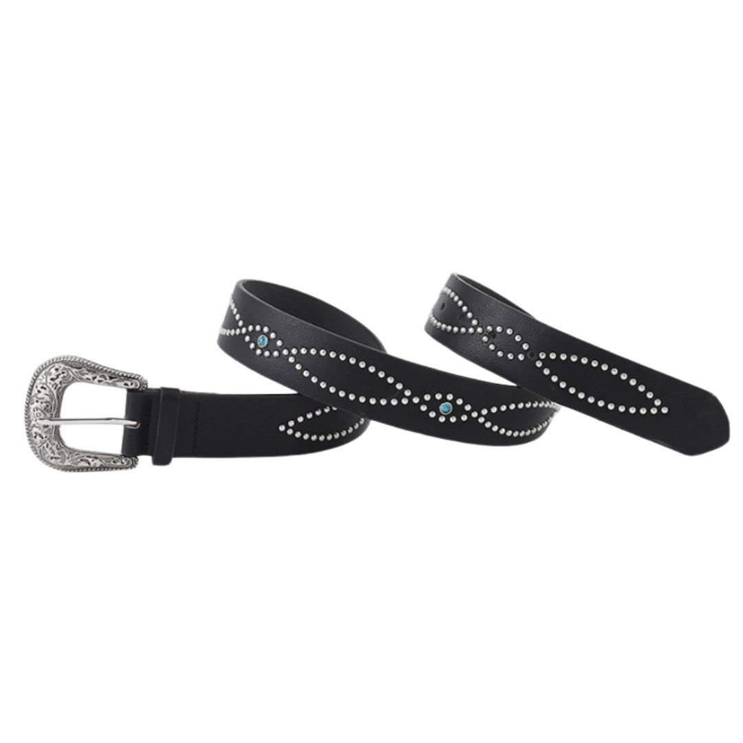 ウエスタンベルト スタッズ ターコイズ レザー ブラック メンズ レディース ヴィンテージ 古着 Y2K アメカジ グランジ バイカー USA PU