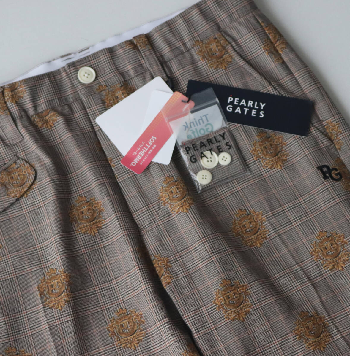 33,000円新品タグ付き【PEARLY GATES パーリーゲイツ】ストレッチ エンブレムチェック柄 ロングパンツ 5(L) v7549-479 |