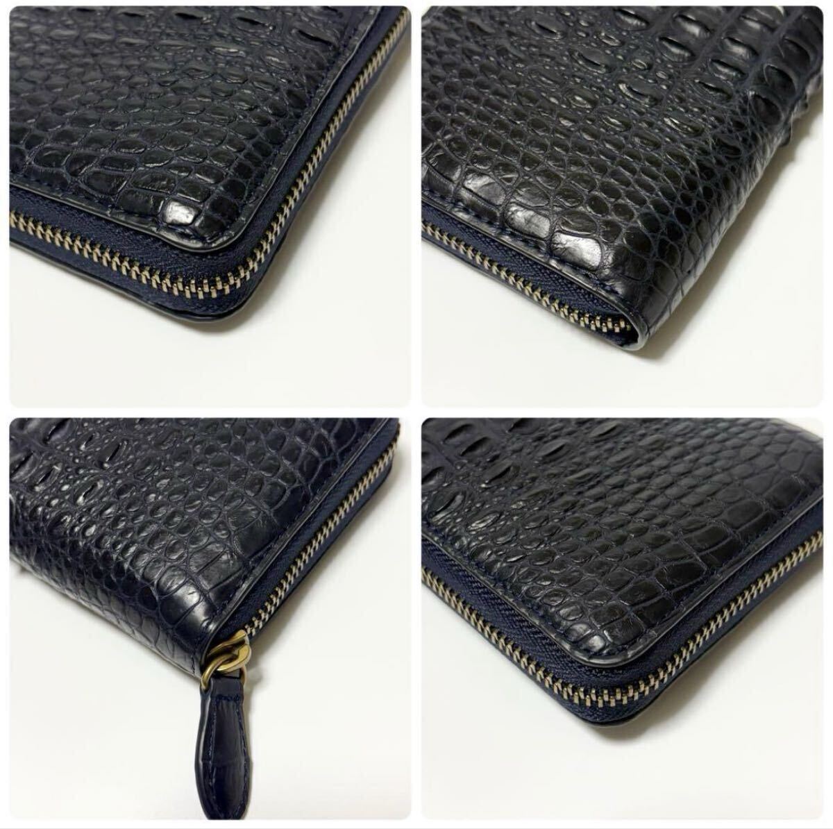 クロコダイルの背中(ホーンバック)が使用されたお財布で6つの突起はクラウンや六文銭と言われ大変縁起が良いです。外装はワニ革で内装は型押しです。