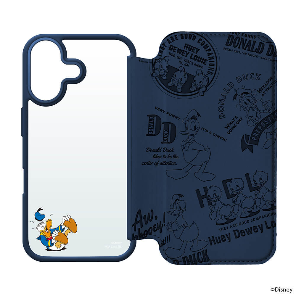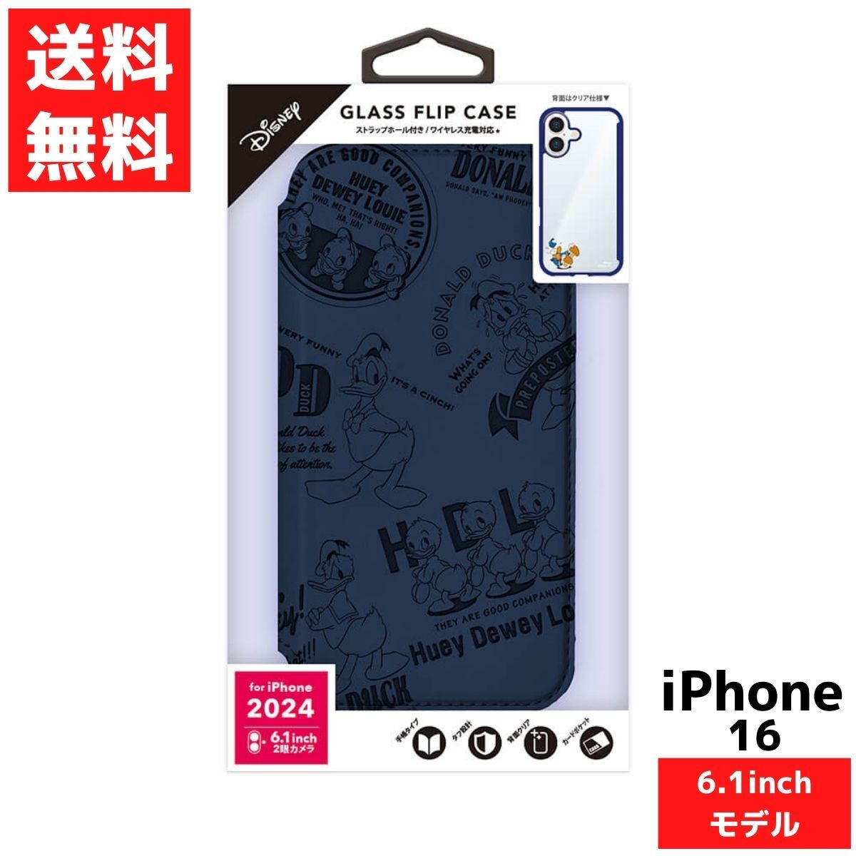 iPhone 16用 ガラスフリップケース ドナルドダック 手帳型 ケース アイフォン スマホ カバー