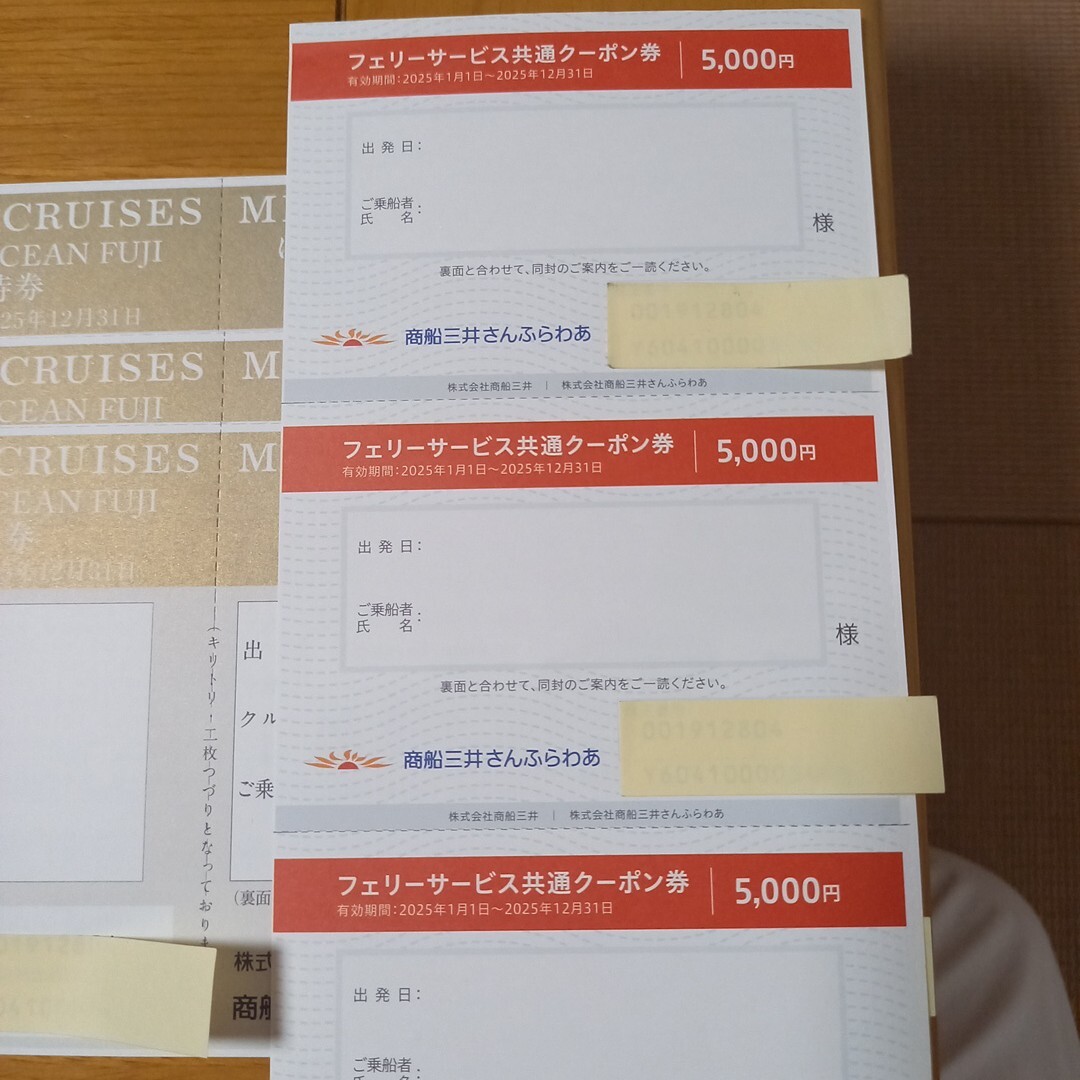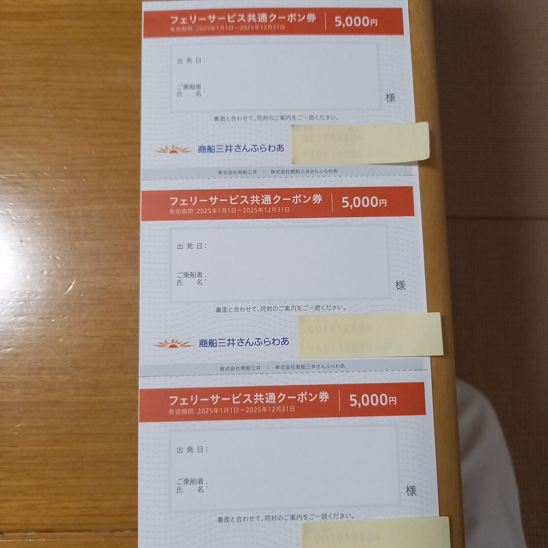 商品名 : さんふらわあ フェリーサービス共通クーポ ン券 5000円×3枚