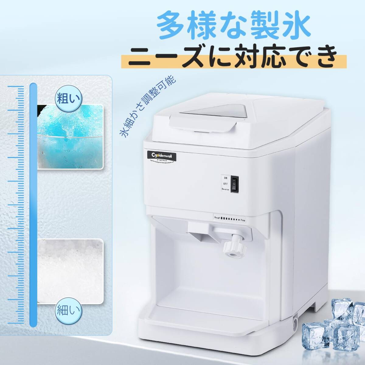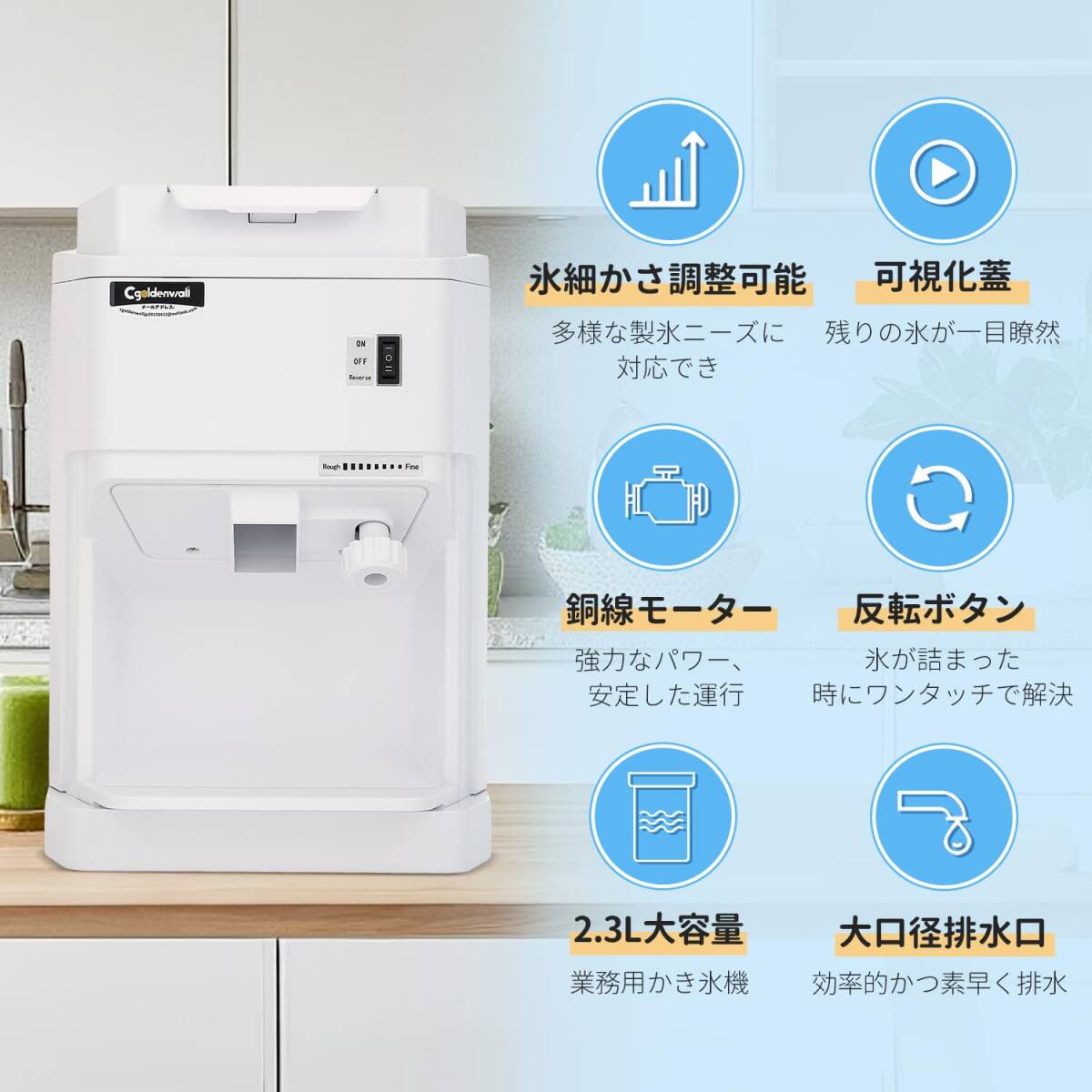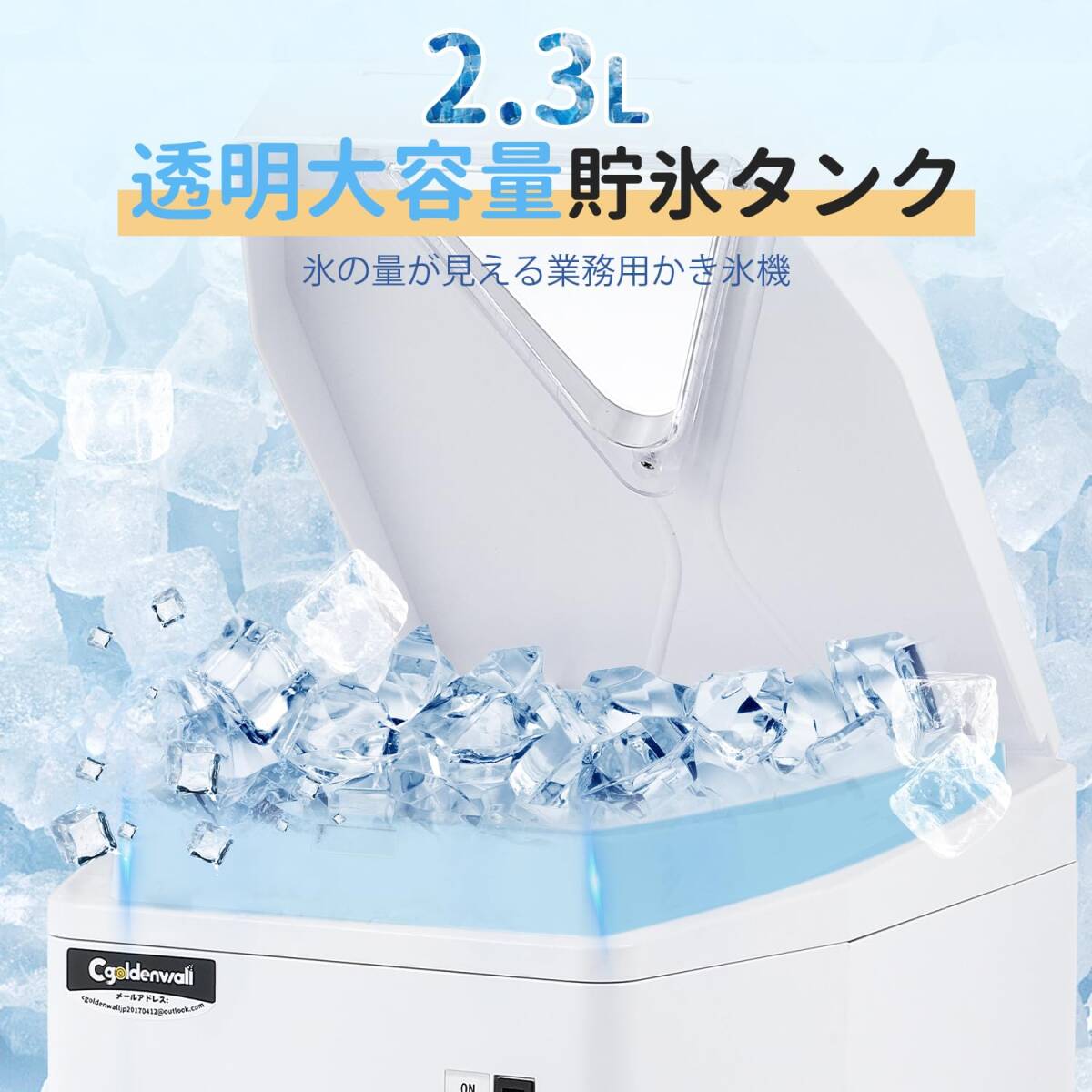 CGOLDENWALL 業務用かき氷機 電動 製氷機 2.3L大容量 120KG/H製氷能力 氷のきめ細かさ調整可能 250w 日本語取扱説明書付き