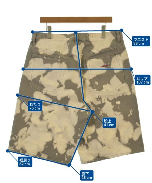 | ウエスト:88cm,裾周り:62cm,ヒップ:107cm,わたり:76cm,股上:41cm,股下:28cm |