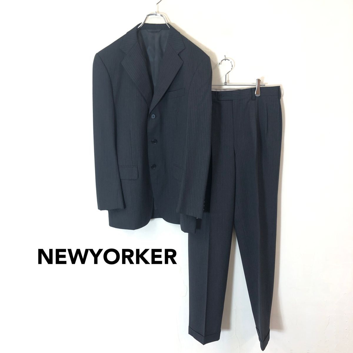 2K1899-O-S◆NEWYORKER ニューヨーカー スーツセットアップ テーラードジャケット 背抜き スラックス◆sizeA6 ブラック 毛