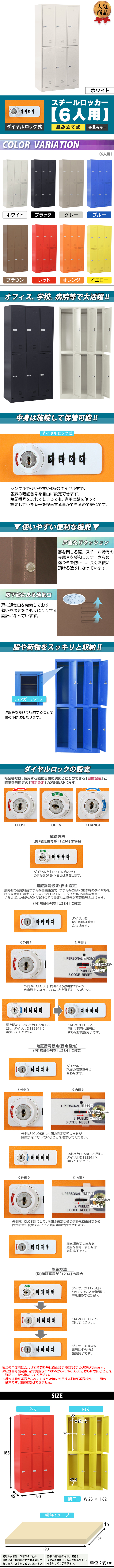 | 商品名 | 送料無料 ロッカー おしゃれ スチールロッカー 6人用 ダイヤルロック式 ダイヤル式 暗証番号検索キー付き3列2段 スチール製 収納 オフィス 事務所 会社 業務用 オフィスロッカー オフィス用品 スリム かぎ付き 更衣ロッカー 六人用 ダイヤル錠 sy236bd |