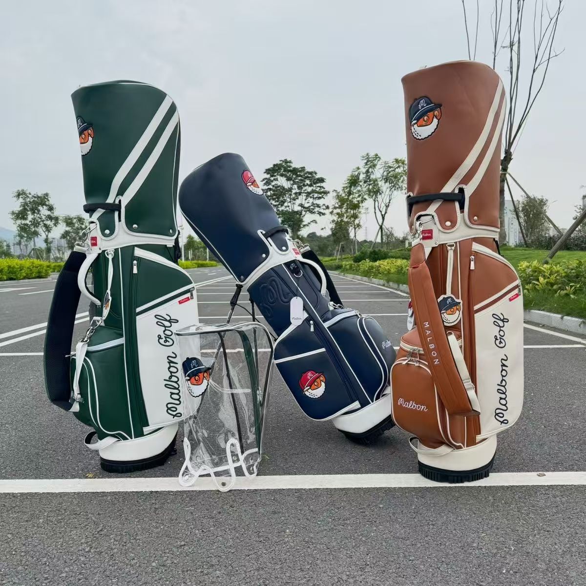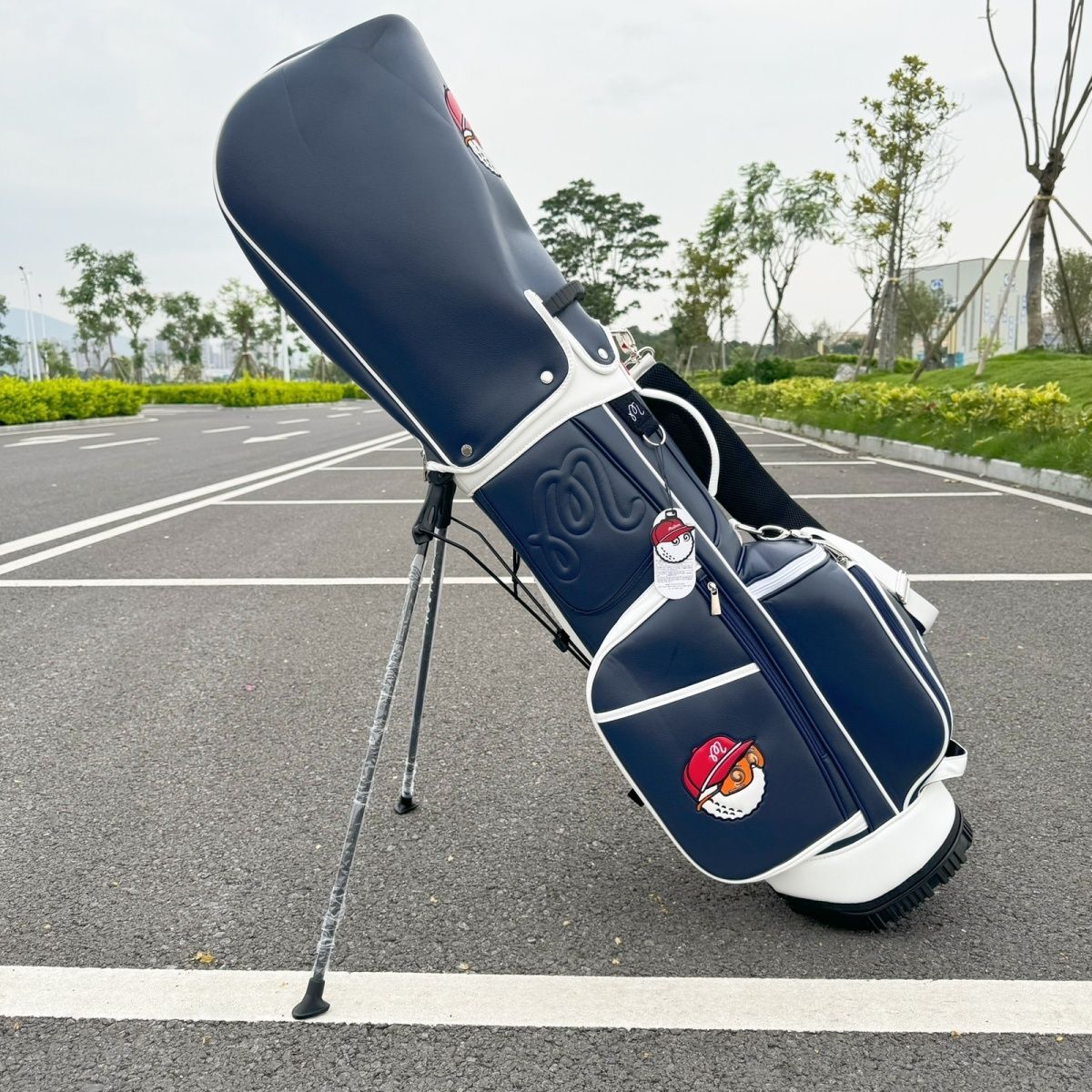 マルボンゴルフ malbon golf キャディバッグ 支柱型ゴルフ 5ウェイ PU 新品 男女兼用 ネイビー sk0445-7