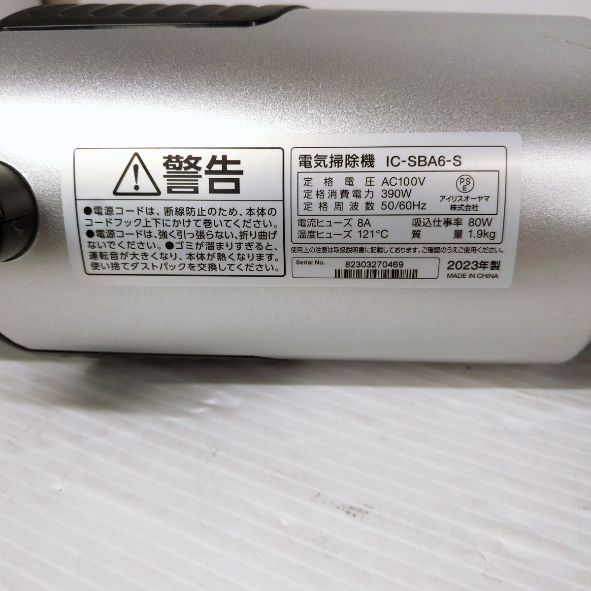 【中古品】アイリスオーヤマ コード式 紙パック 極細軽量 モップ付 掃除機 2023年製 IC-SBA6-S〇YR-53732〇 の出品です。