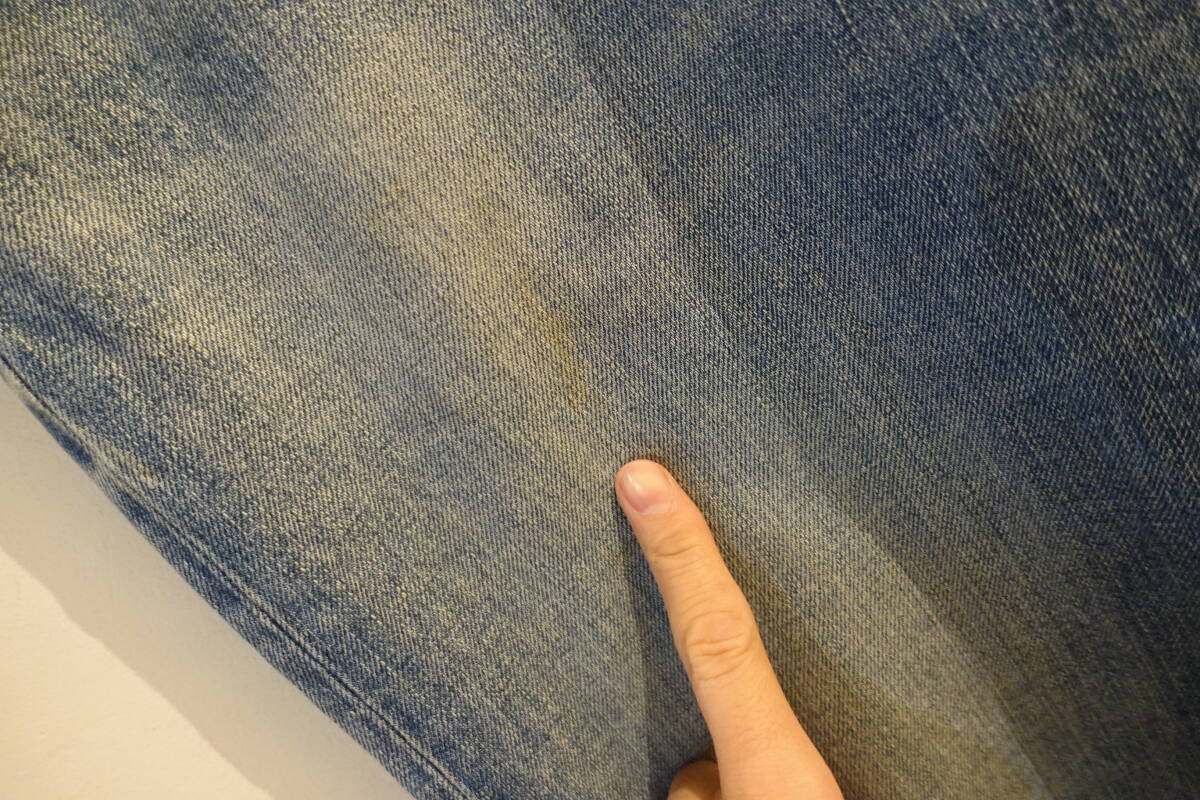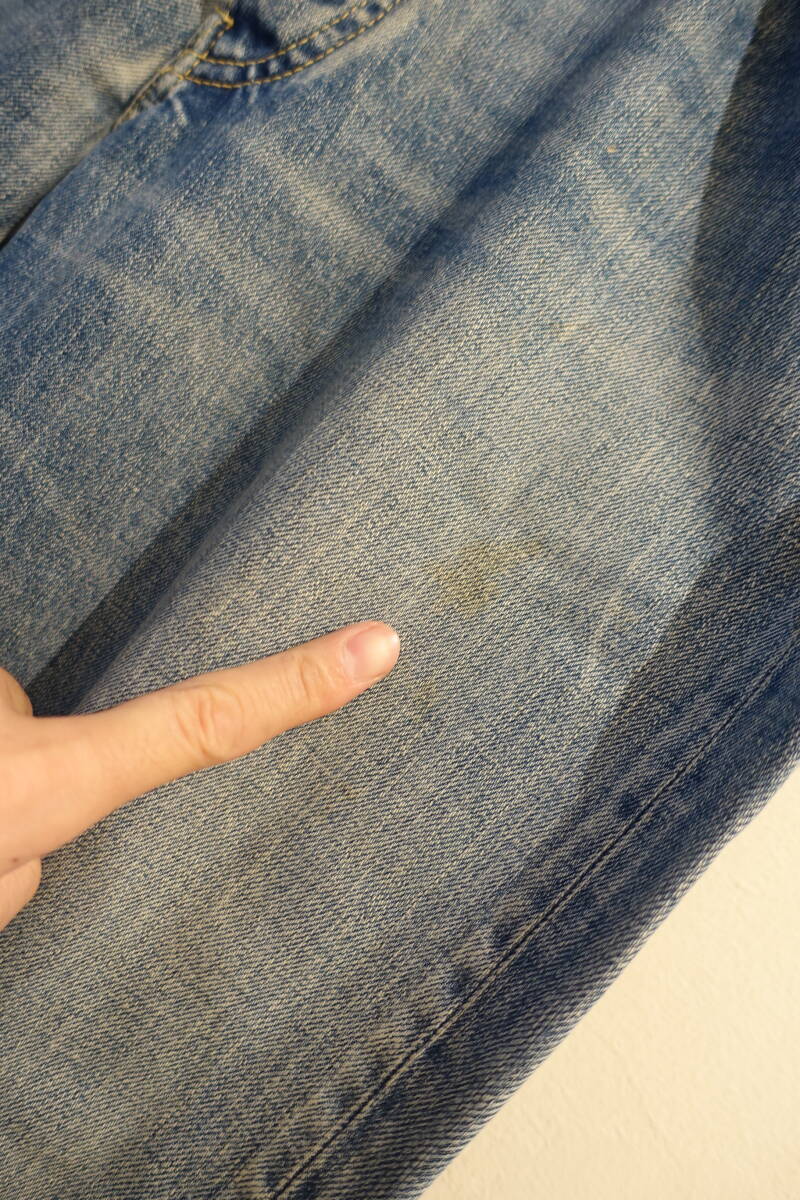 サイズは9 ウエスト平置きで41.5 股下85 股上26 裾幅21 状態は若干使用感ありです。目立つダメージはありません。かなり強い古着の加工が施されています。糸の若干のほつれや、薄汚れ等も加工です。目立つダメージはありません。よろしくお願いします!