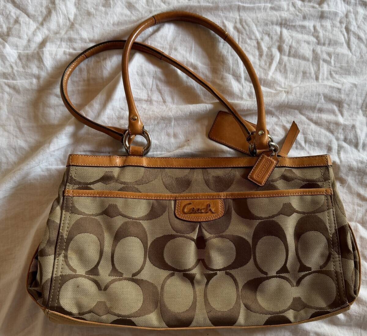 COACH コーチ シグネチャー レザー×キャンバス ハンドバッグ 肩掛け