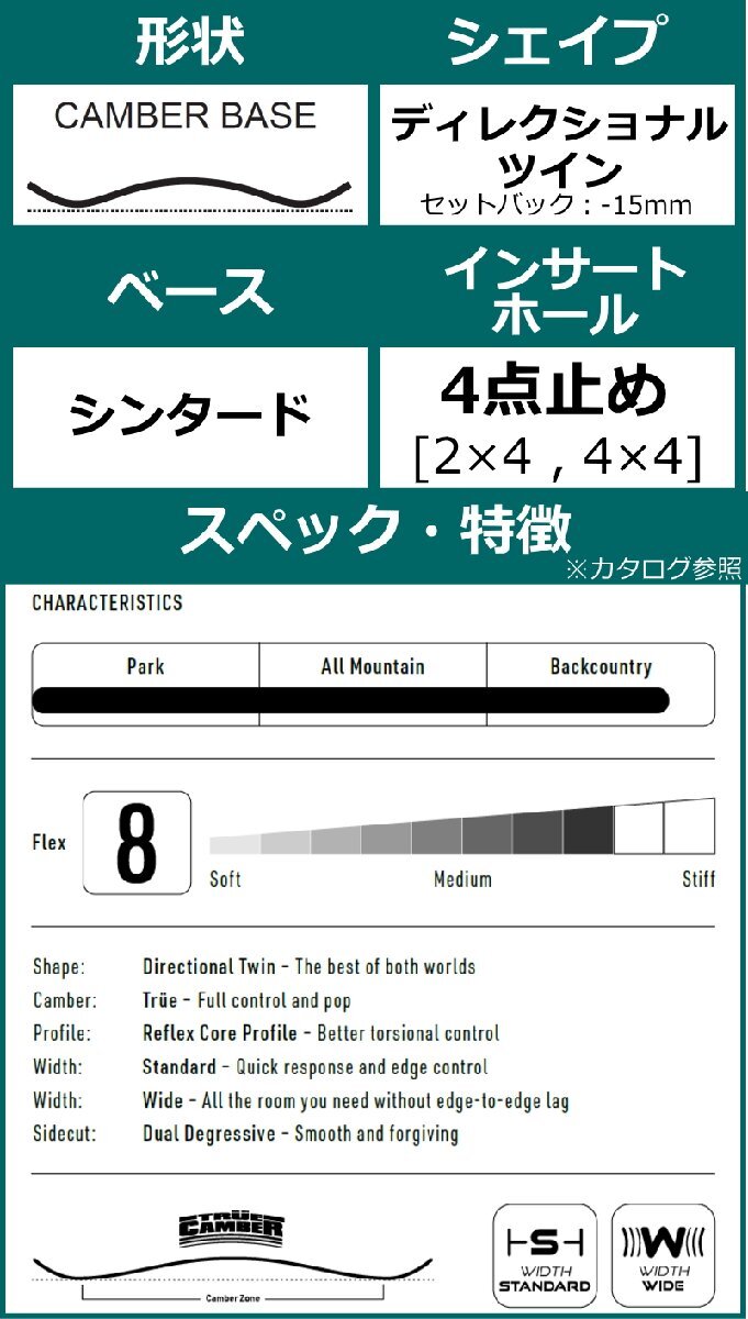 The stiff flex provides stability at high speeds, and the high rebound characteristic of camber makes park riding fun!