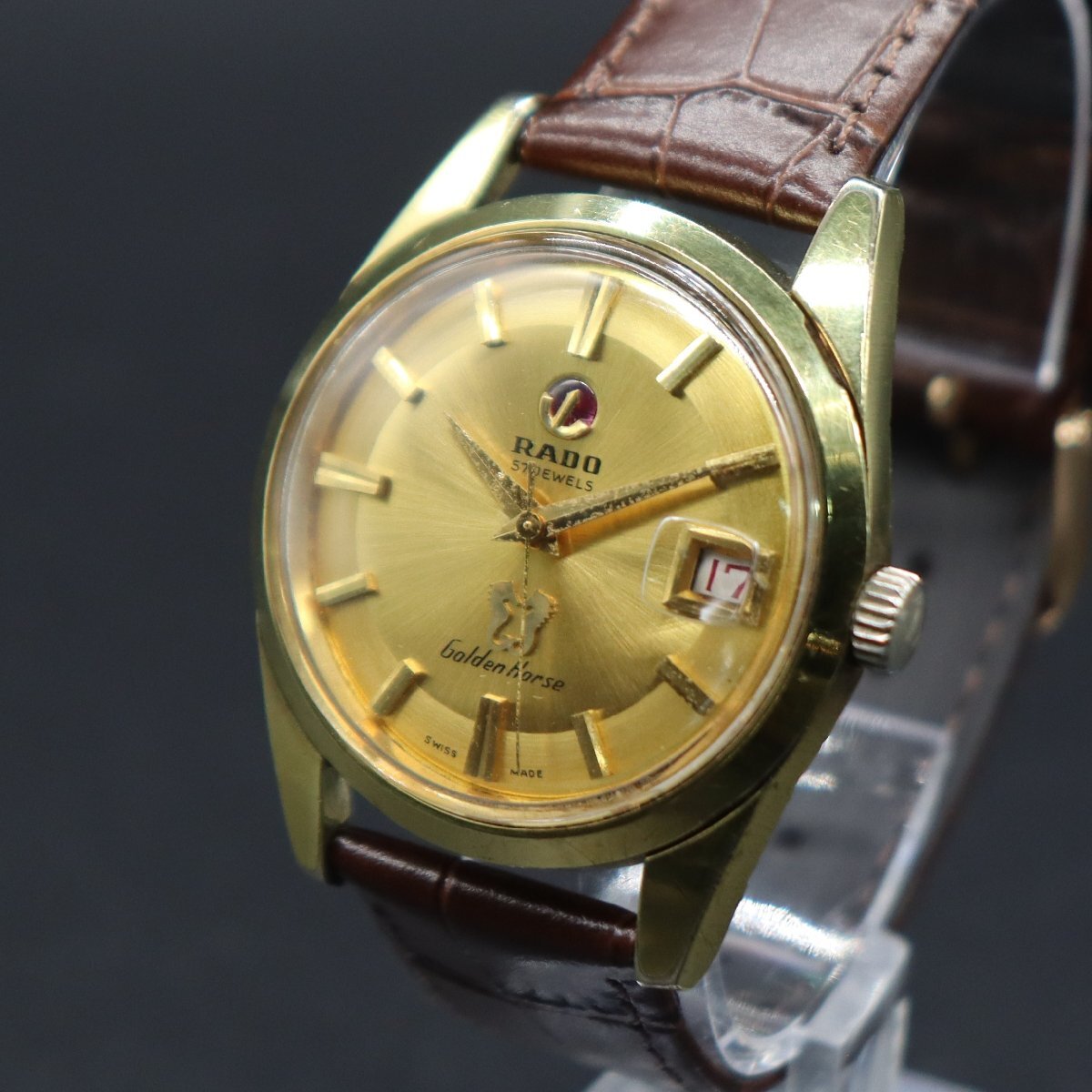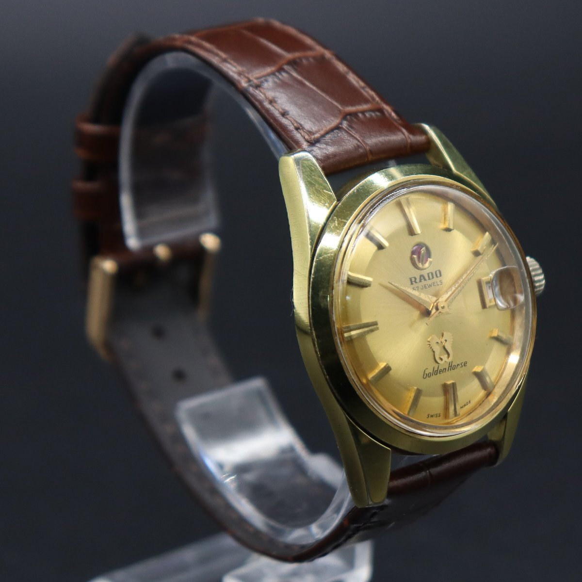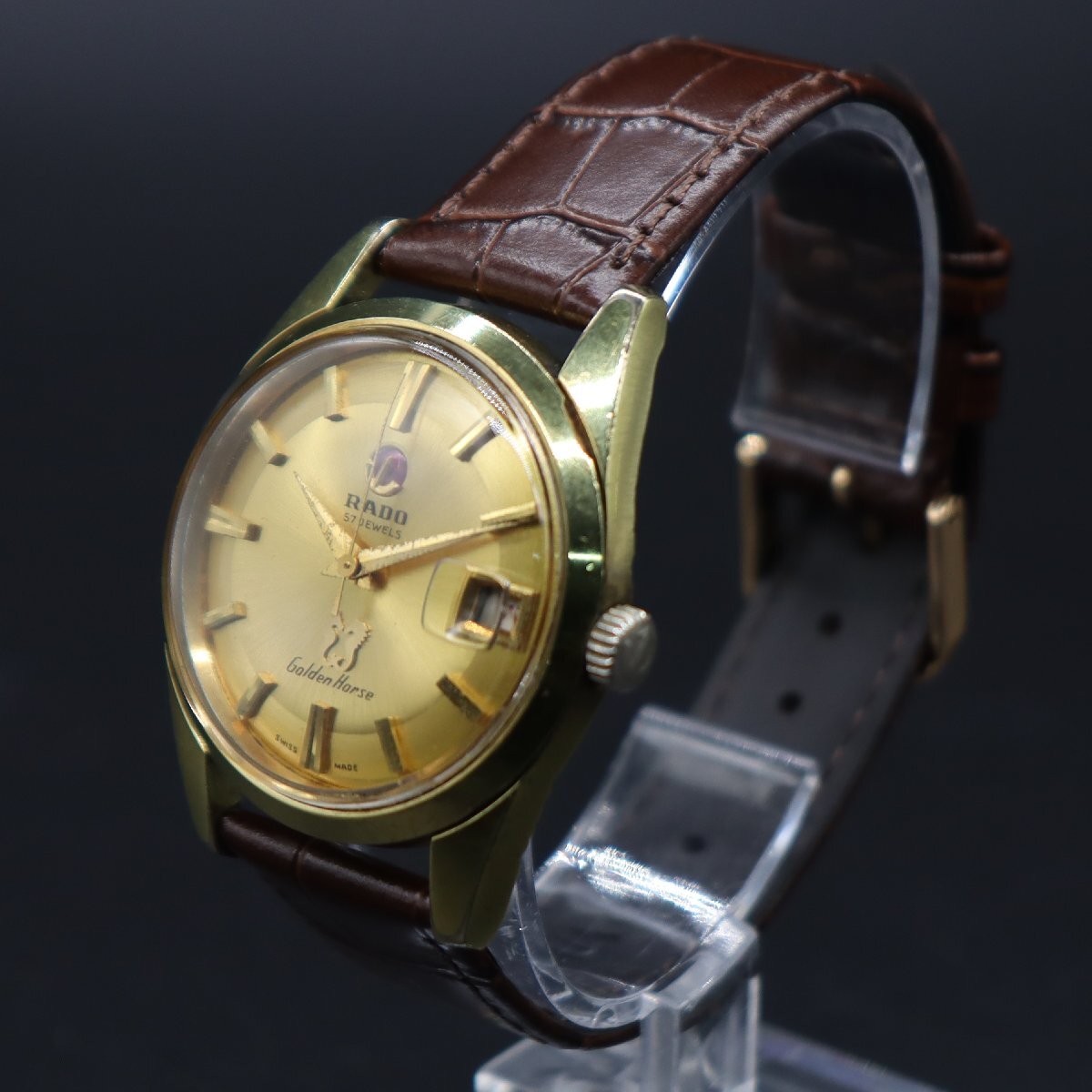 ゴールデンホースの希少57石モデルです。 1957年に「シュラップ」から「ラドー」に社名変更し、 ラドーブランドが誕生したことを記念して、57石モデルが限定生産されました。 簡易的ではございますが、 出品前に時計全体をアルコール消毒しております。 |
