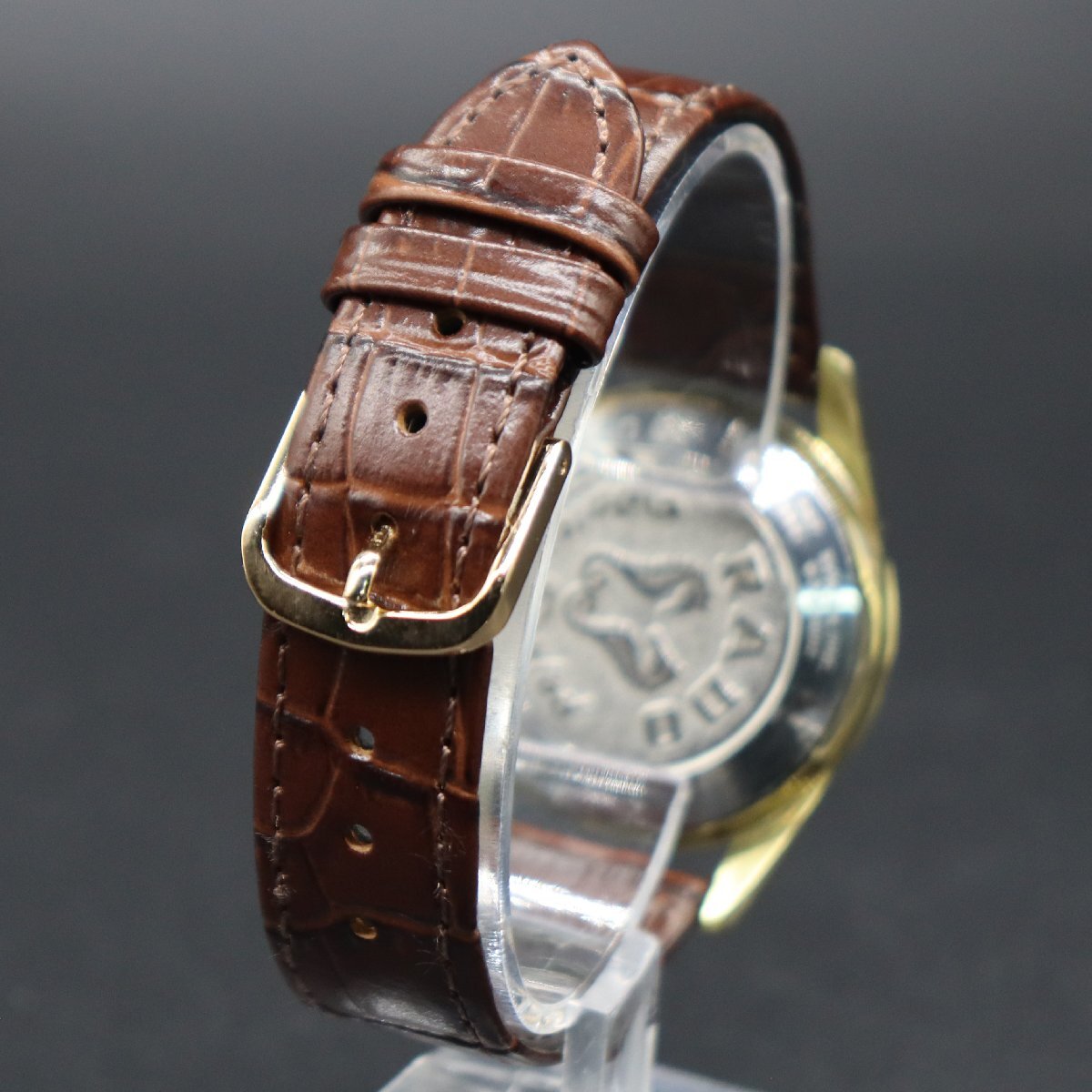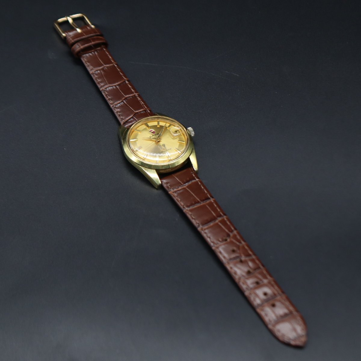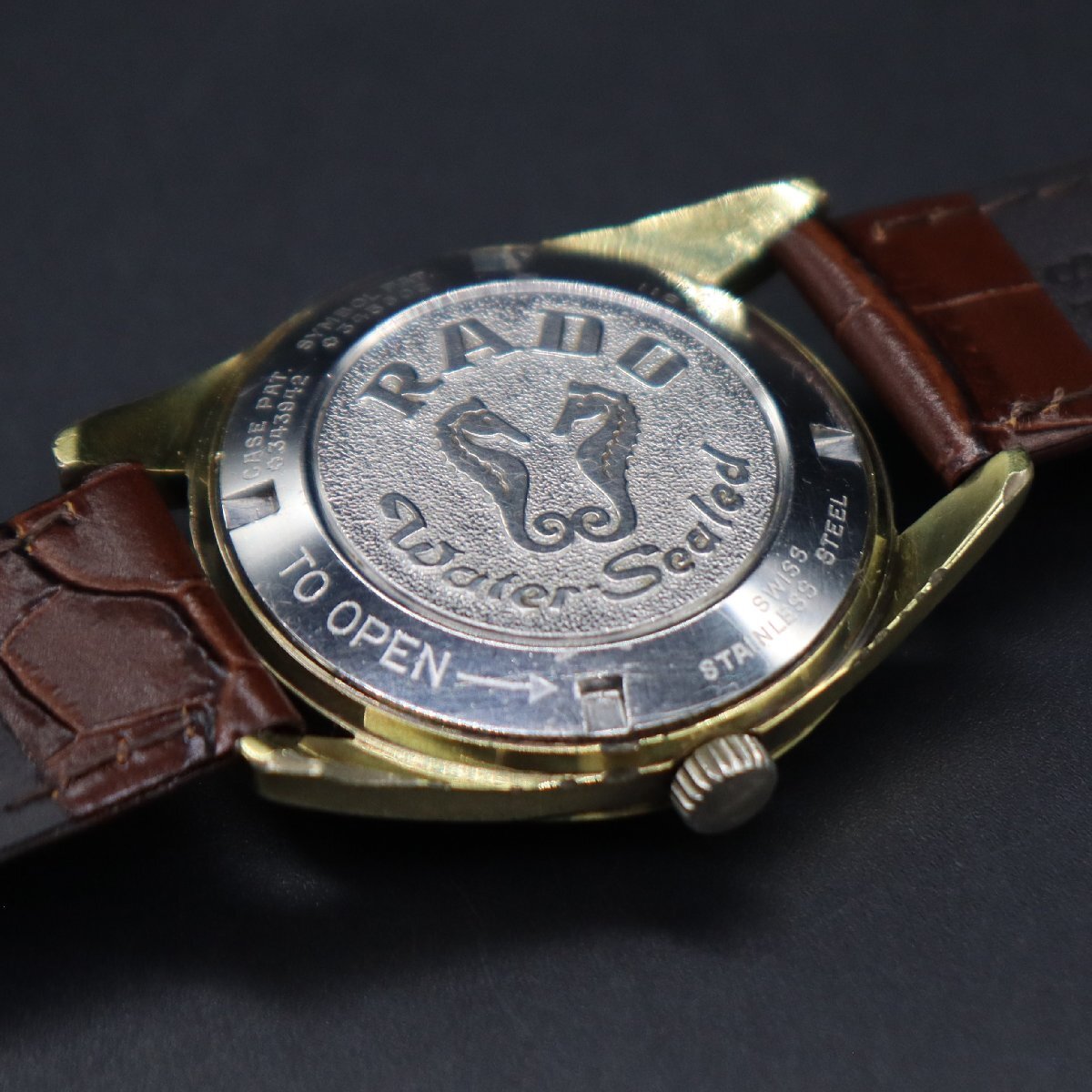 ゴールデンホースの希少57石モデルです。 1957年に「シュラップ」から「ラドー」に社名変更し、 ラドーブランドが誕生したことを記念して、57石モデルが限定生産されました。 簡易的ではございますが、 出品前に時計全体をアルコール消毒しております。 |
