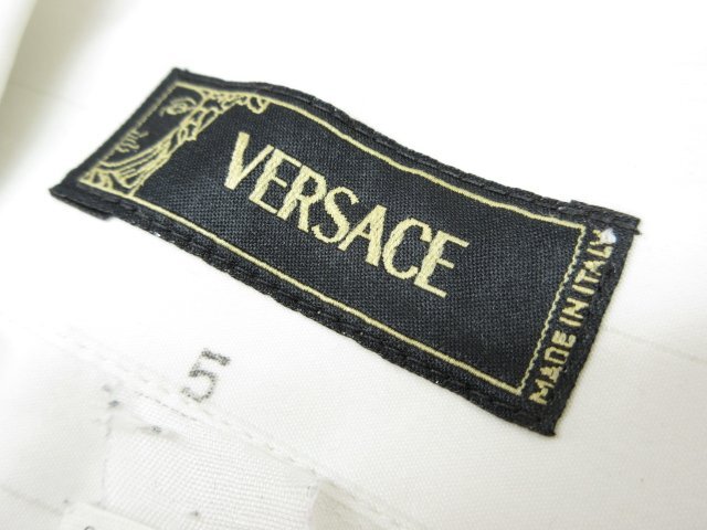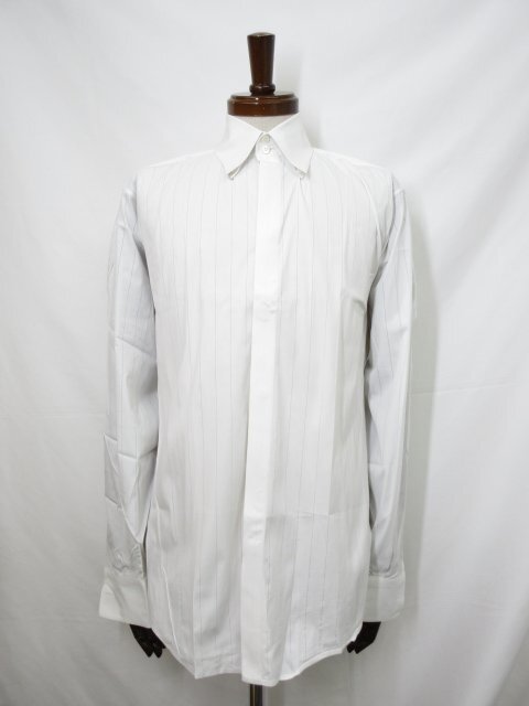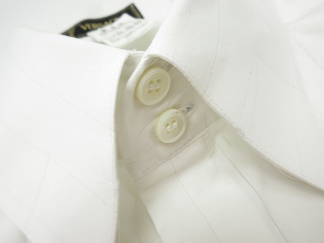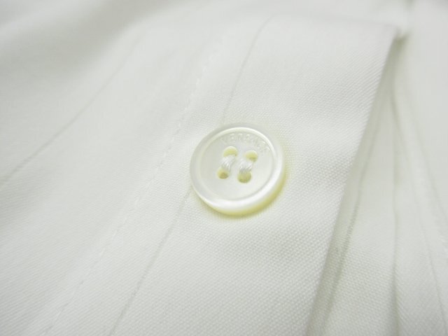 美品【VERSACE ヴェルサーチ】 ストライプ柄 隠しボタンダウン 比翼ボタン 長袖シャツ (メンズ) size50 ホワイト×グレー 伊製◇33MK6061◇