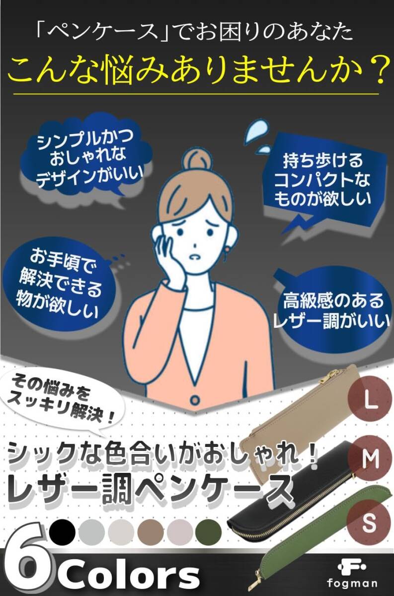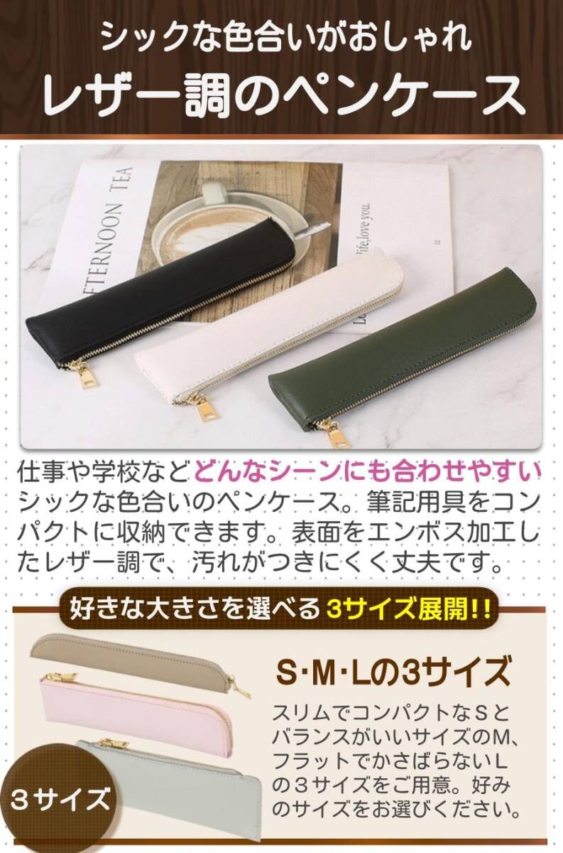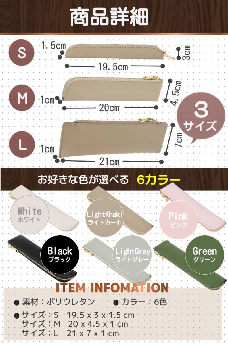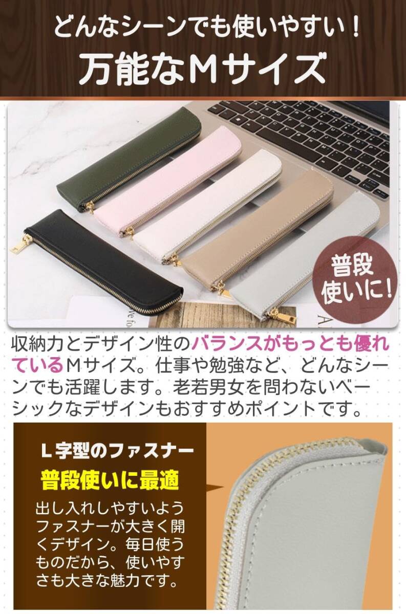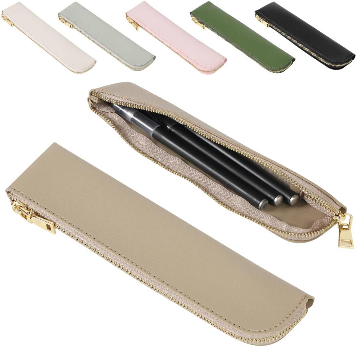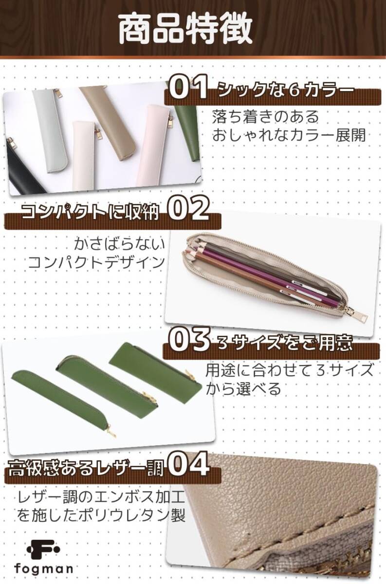 PUレザー おしゃれ スリム パステルカラー 可愛い ペンケース 無地 筆箱 軽量 fogman (ライトカーキ, M)