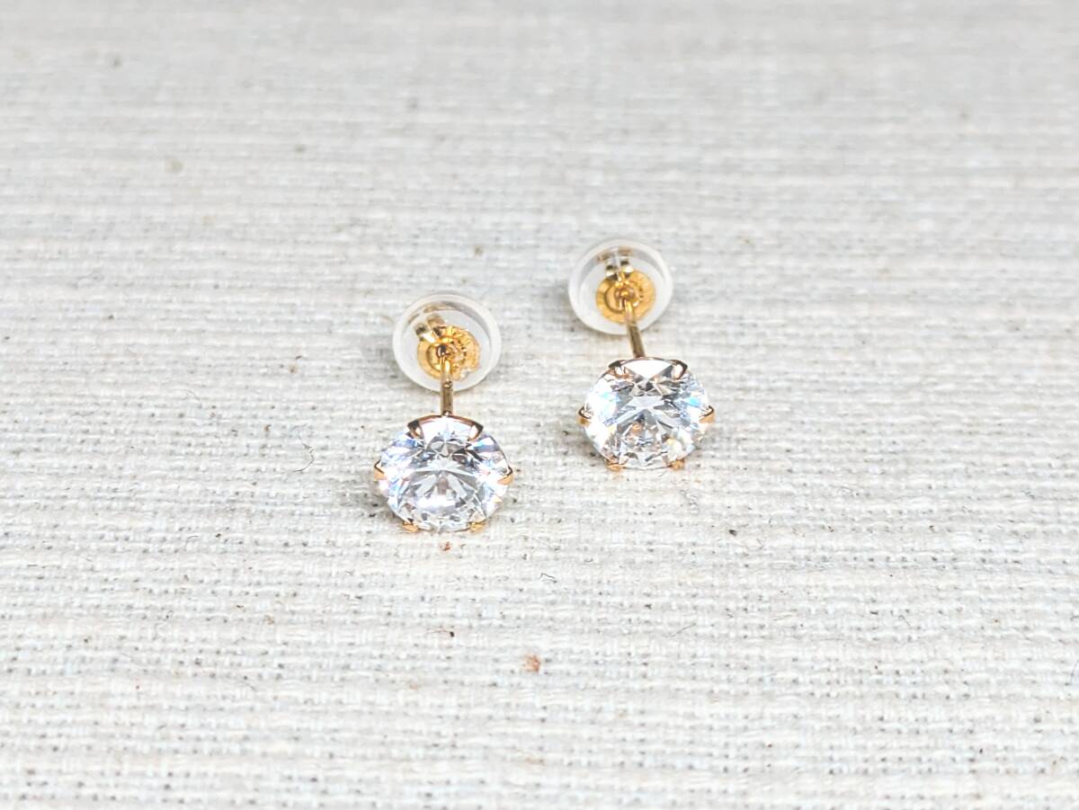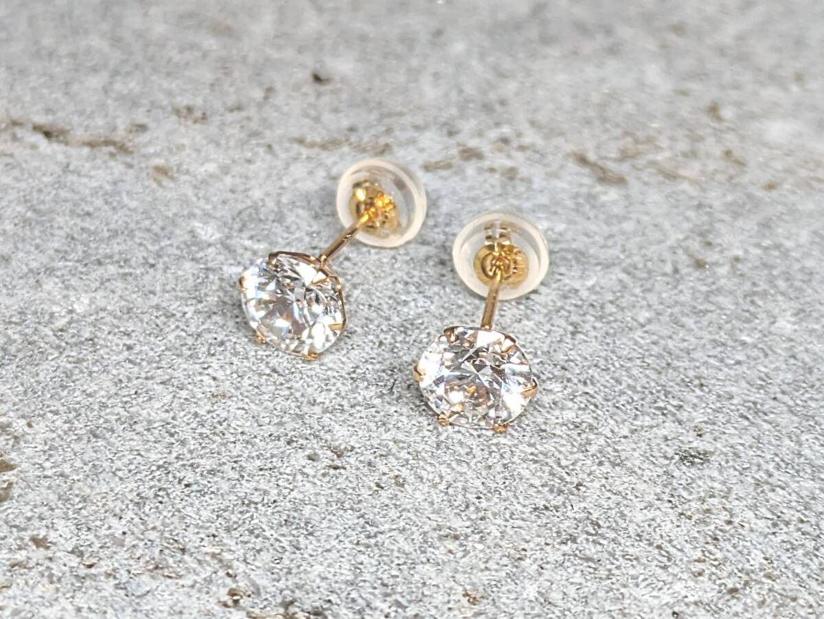 《宝商店》 スーパーキュービックジルコニア ゴールド K18 スタッドピアス 6ミリ 定番