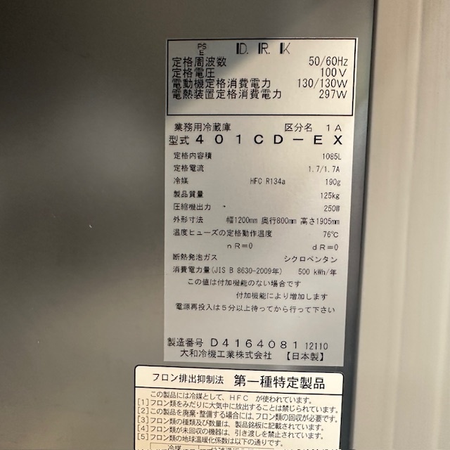 消費電力 | 冷却時:182/182・霜取時:297/297W |